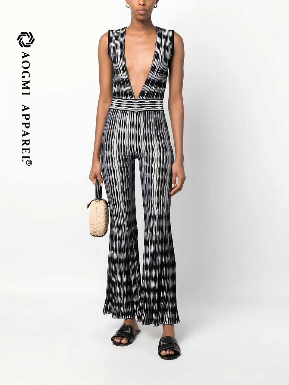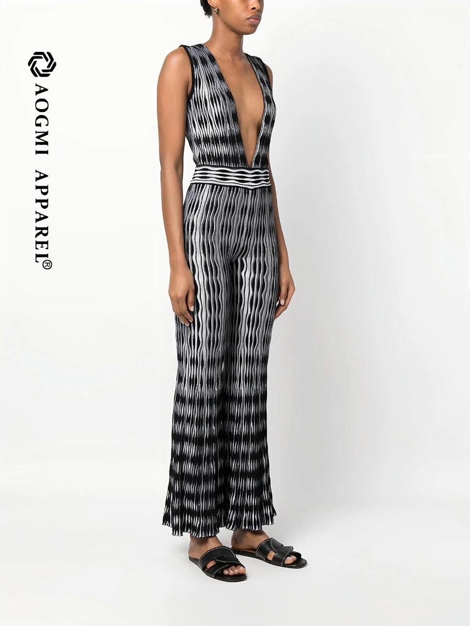 Haute Couture Fashion Ladies Sleeveless Knit One-Piece Shirt Deep V Neck Casual Summer Breathable