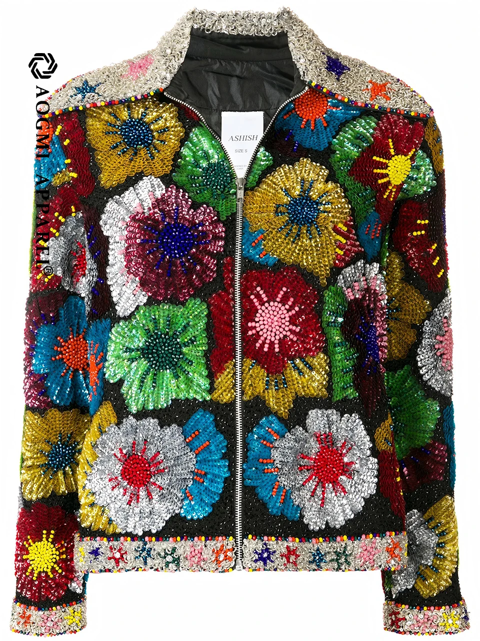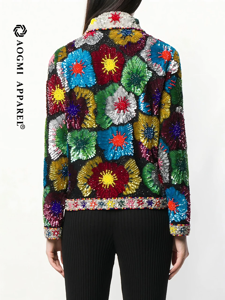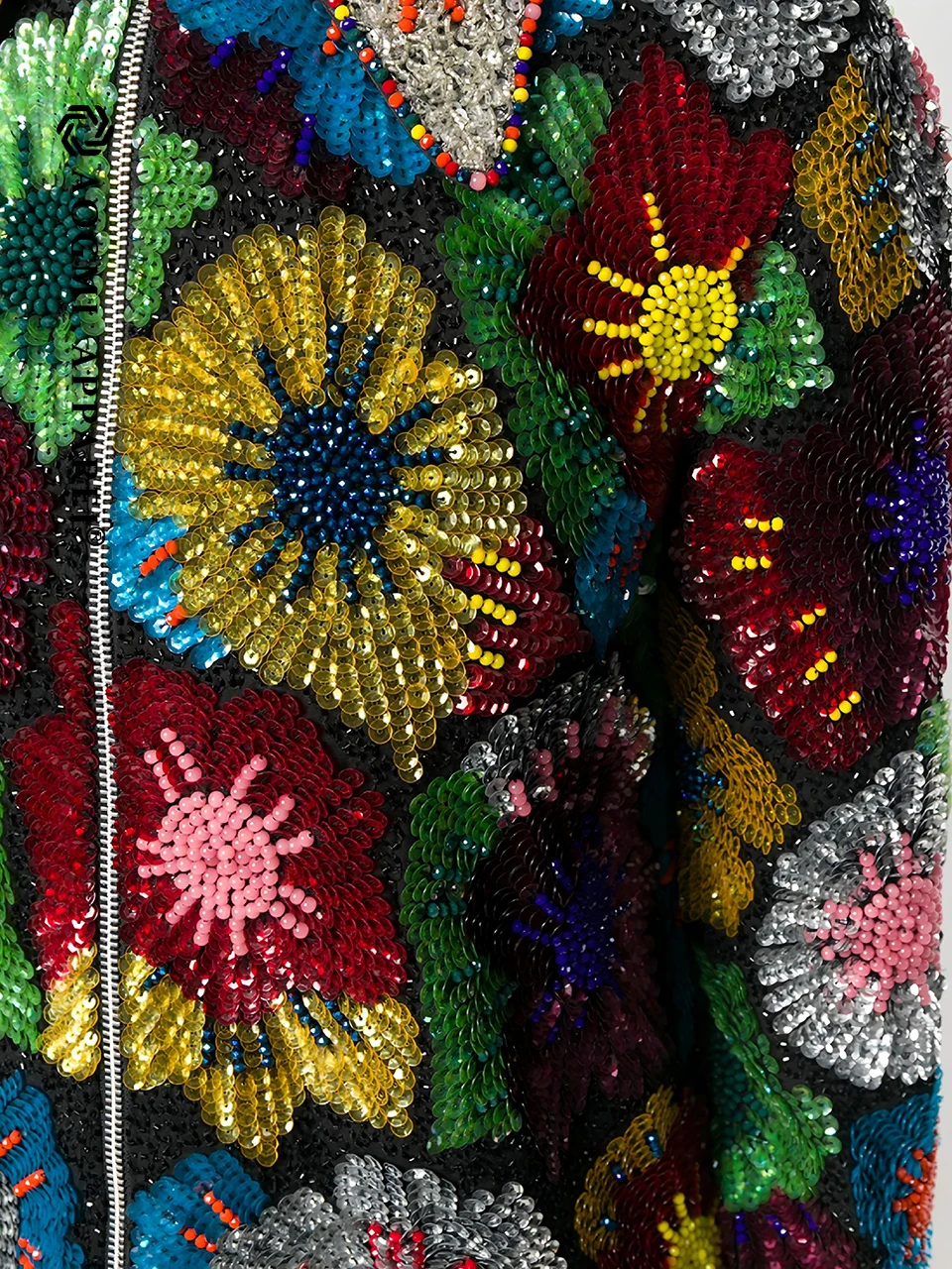 Haute Couture Comfortable Ladies Shiny Sequin Lace V-neck Zipper Embroidered Eco-Friendly Winter