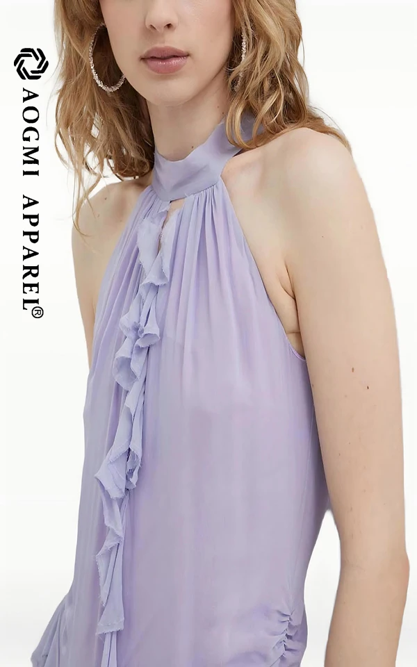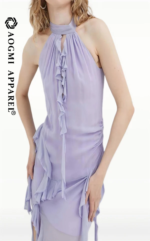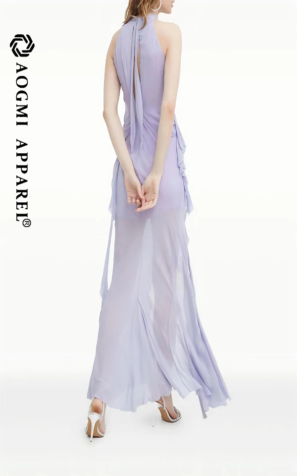 Haute Couture Luxury Women's Halter Neck Floor-Length A-Line Satin Irregular Side Split Dress