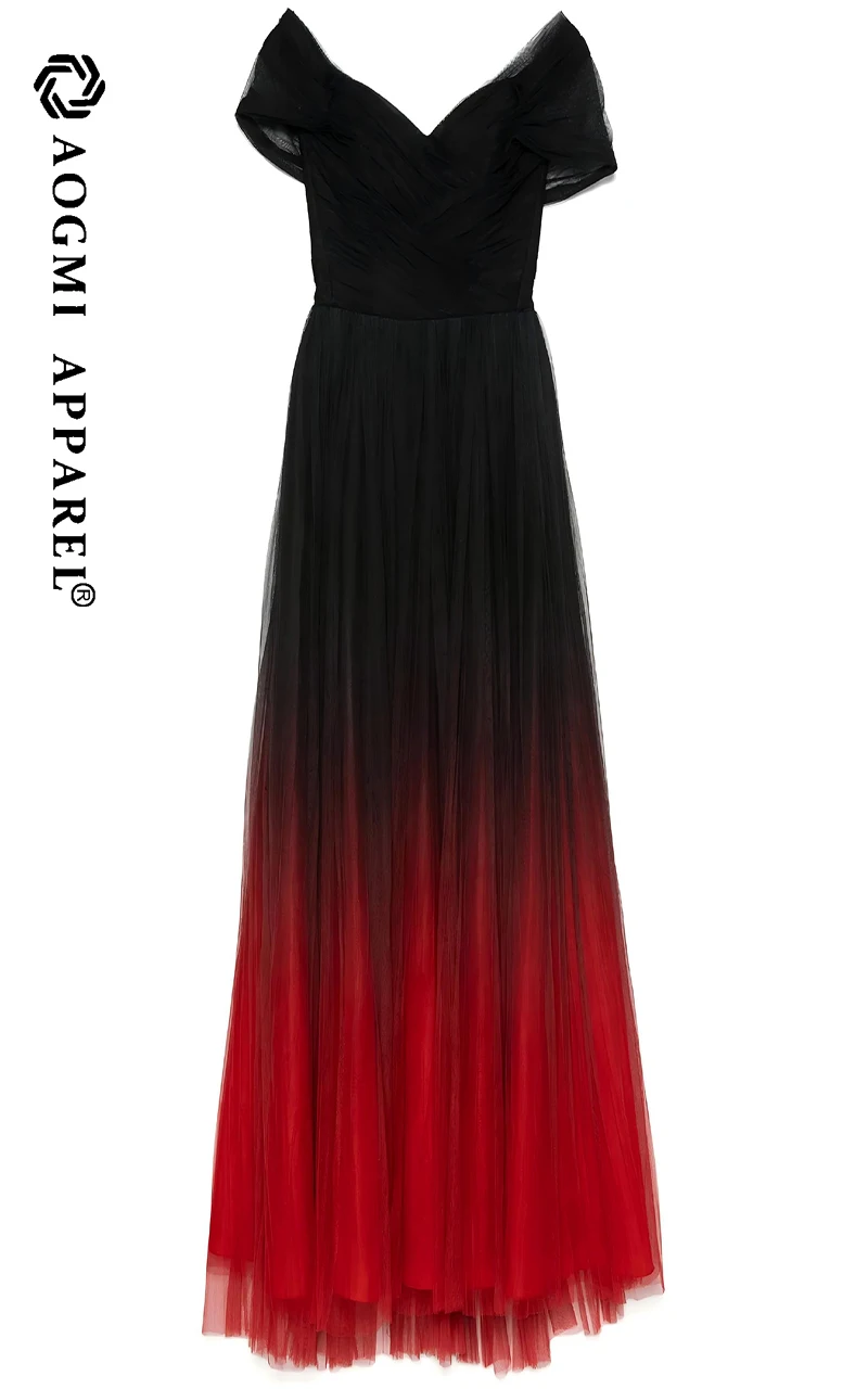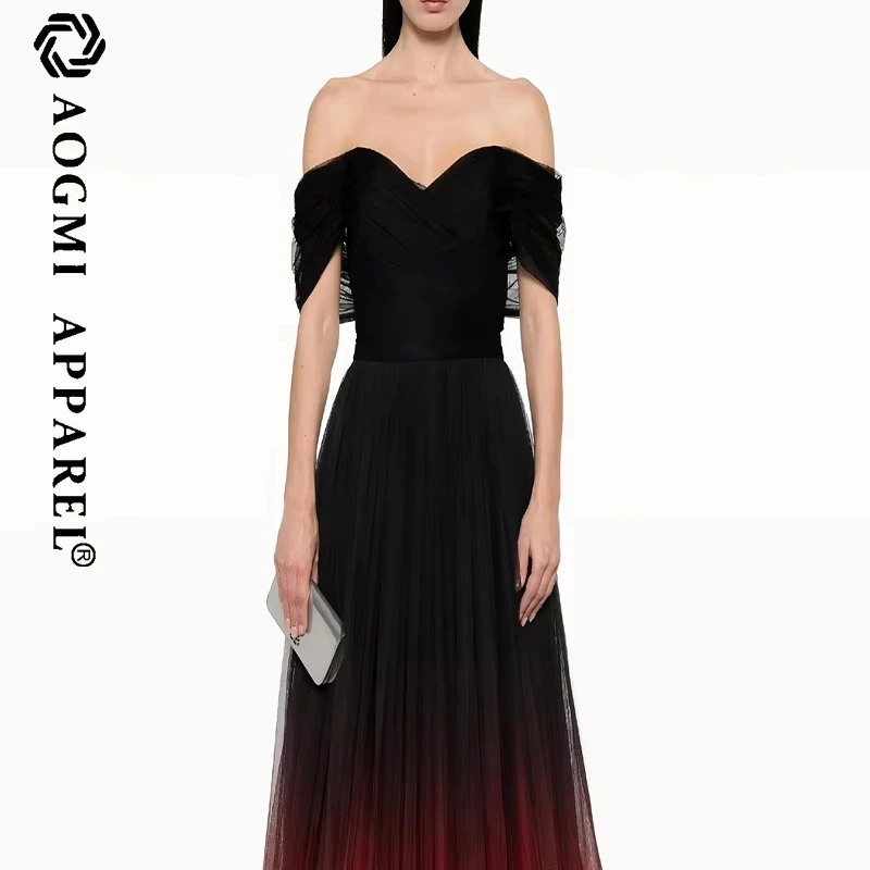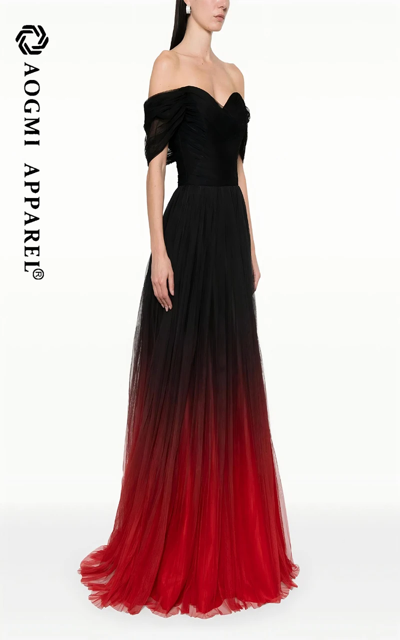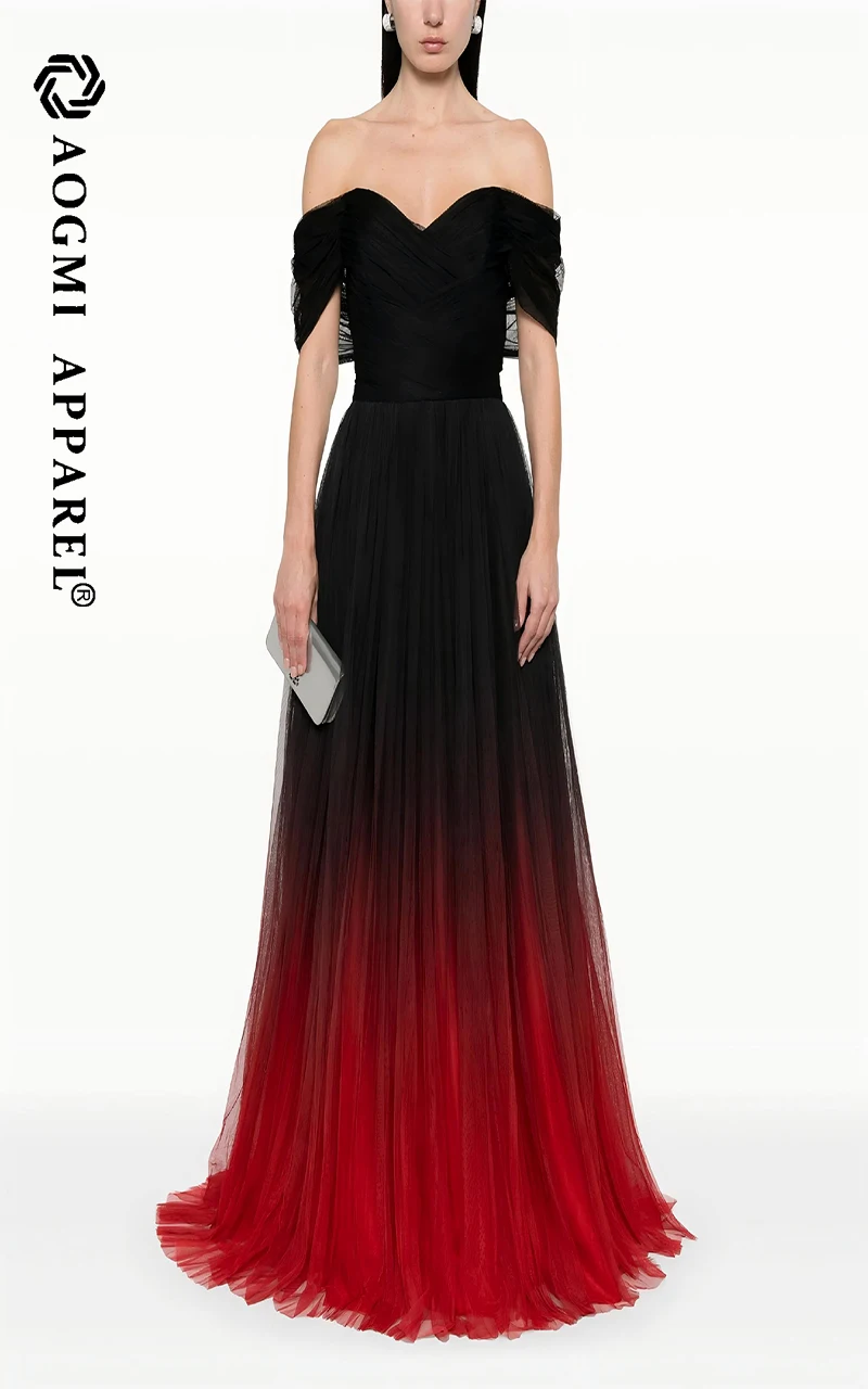 Haute Couture Comfortable Ladies Floor-Length Off-the-Shoulder Neckline Gradient Sleeveless Satin Club Dress A-Line Silhouette