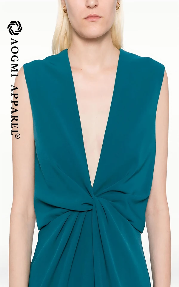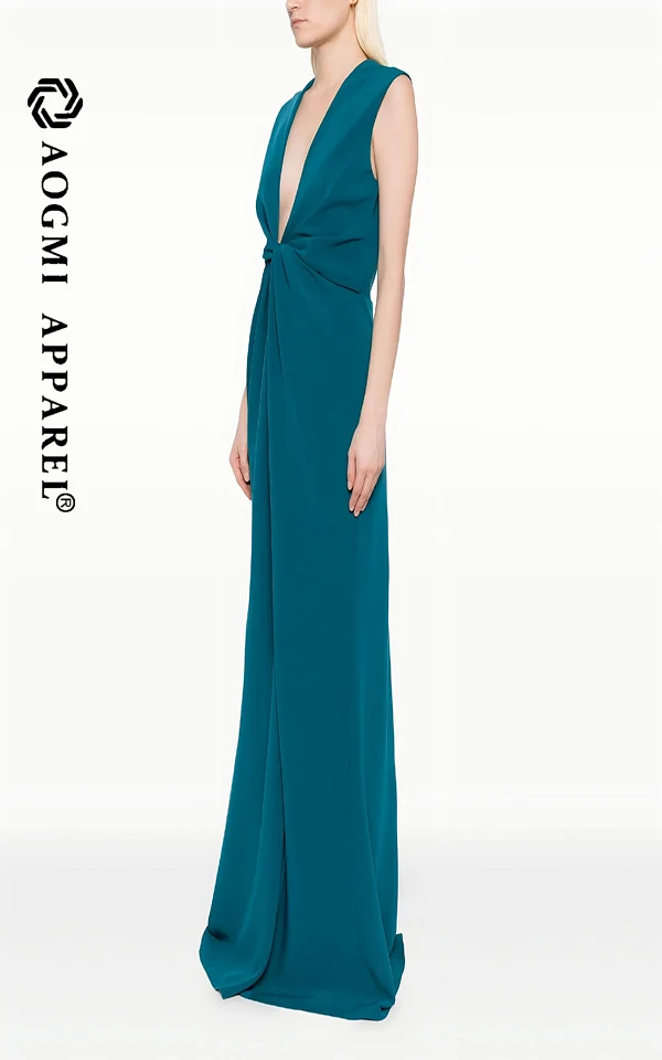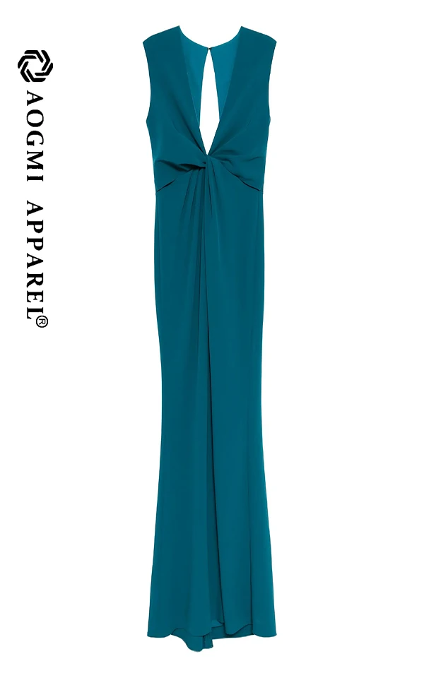 Haute Couture Fashion Ladies Skin-Friendly Eco-Friendly Silk Split V-neck Floor-Length Pleated Royal Sister Dress