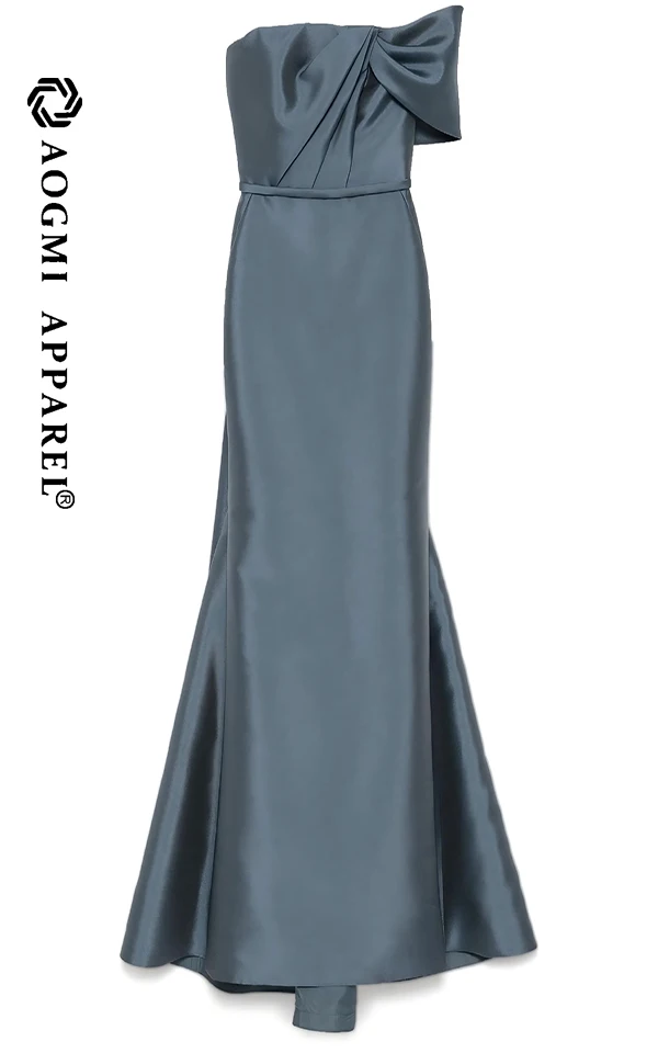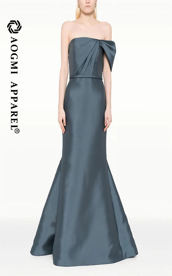 Haute Couture Fashion Ladies Maxi A-Line 100% Silk Off-the-Shoulder High Waist Slim Elegant Strapless Party Large Pendulum Dress