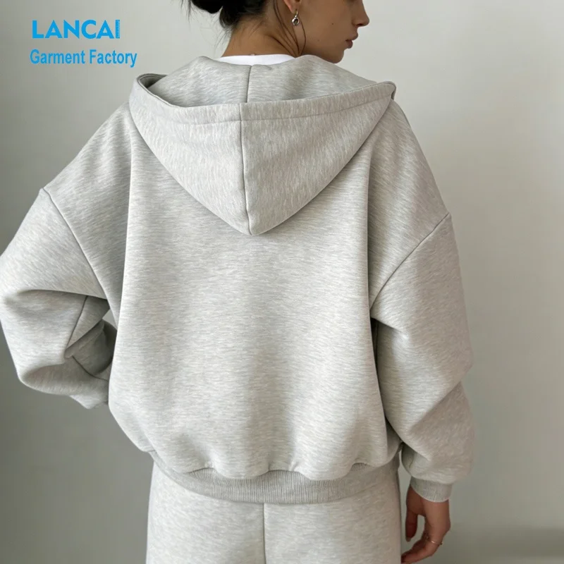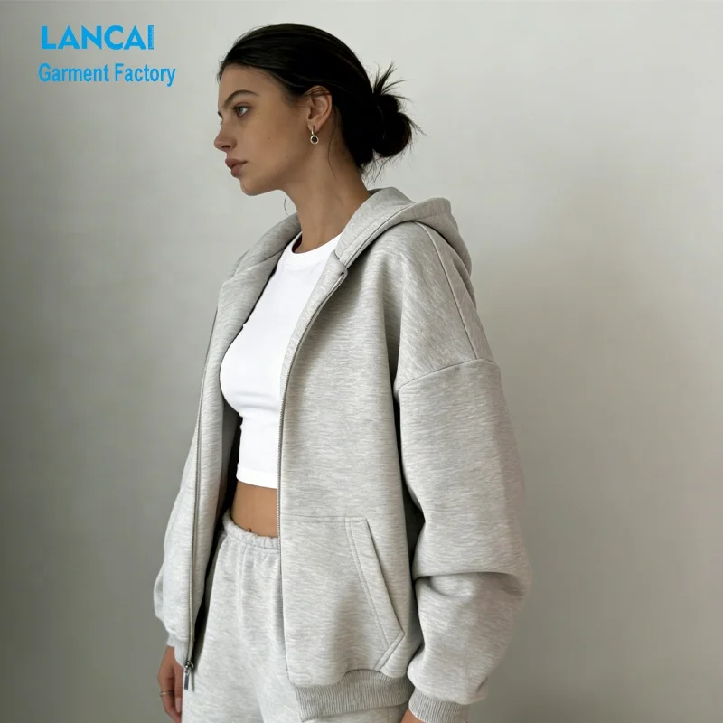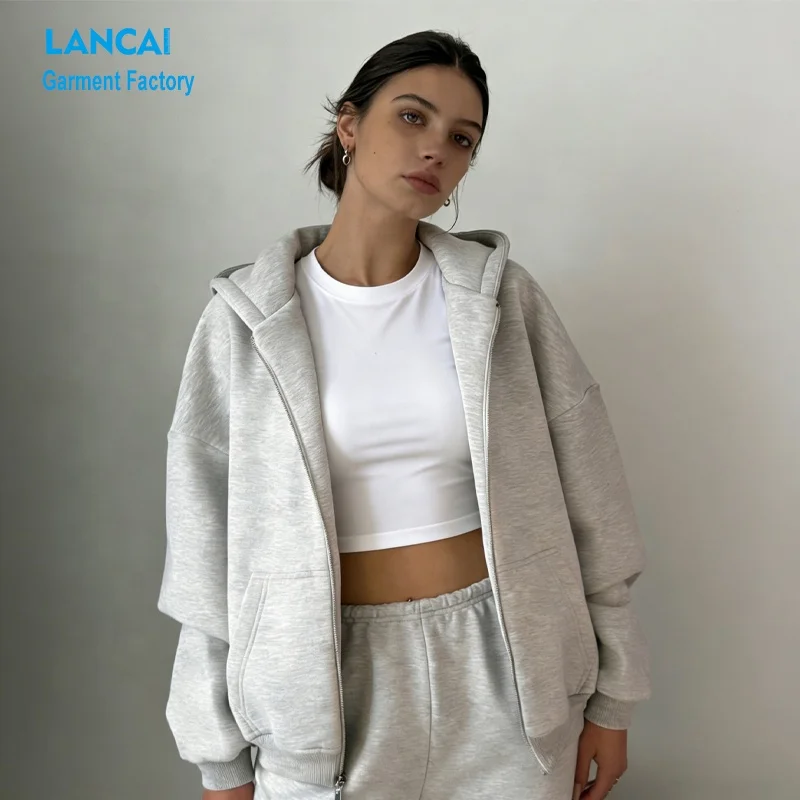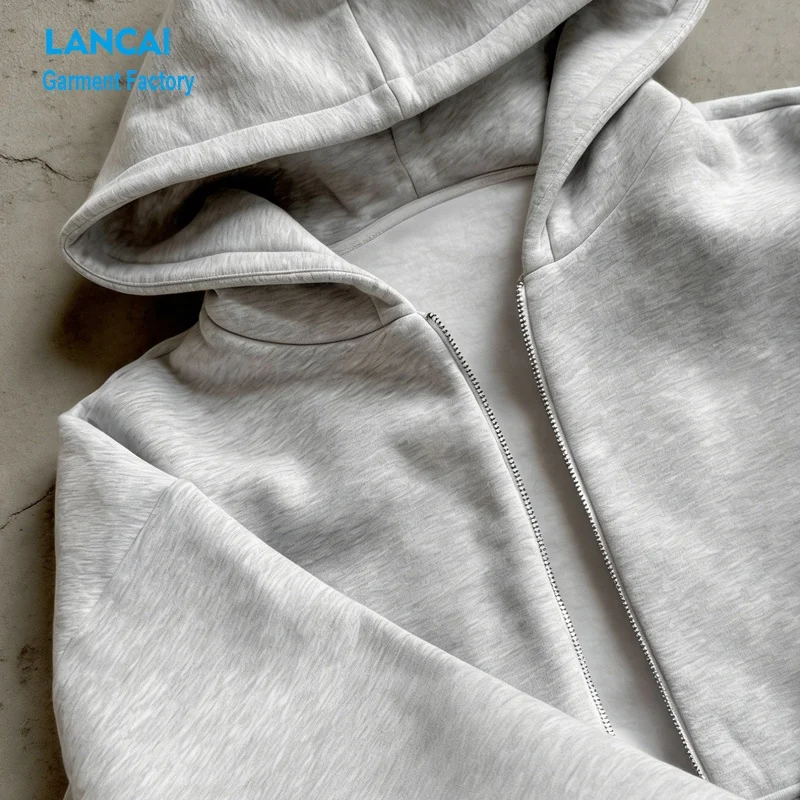 320 480 GSM Cotton Fleece French Terry Custom Luxury Heather Grey Zip up Unisex Hoodie Manufacturer