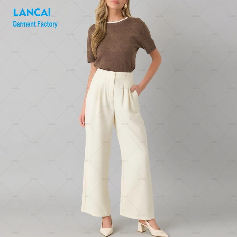 Women Loose Fit Breathable Wide Leg Dress Pants Customizable High Waist Office Casual Trousers Fashion Bottoms