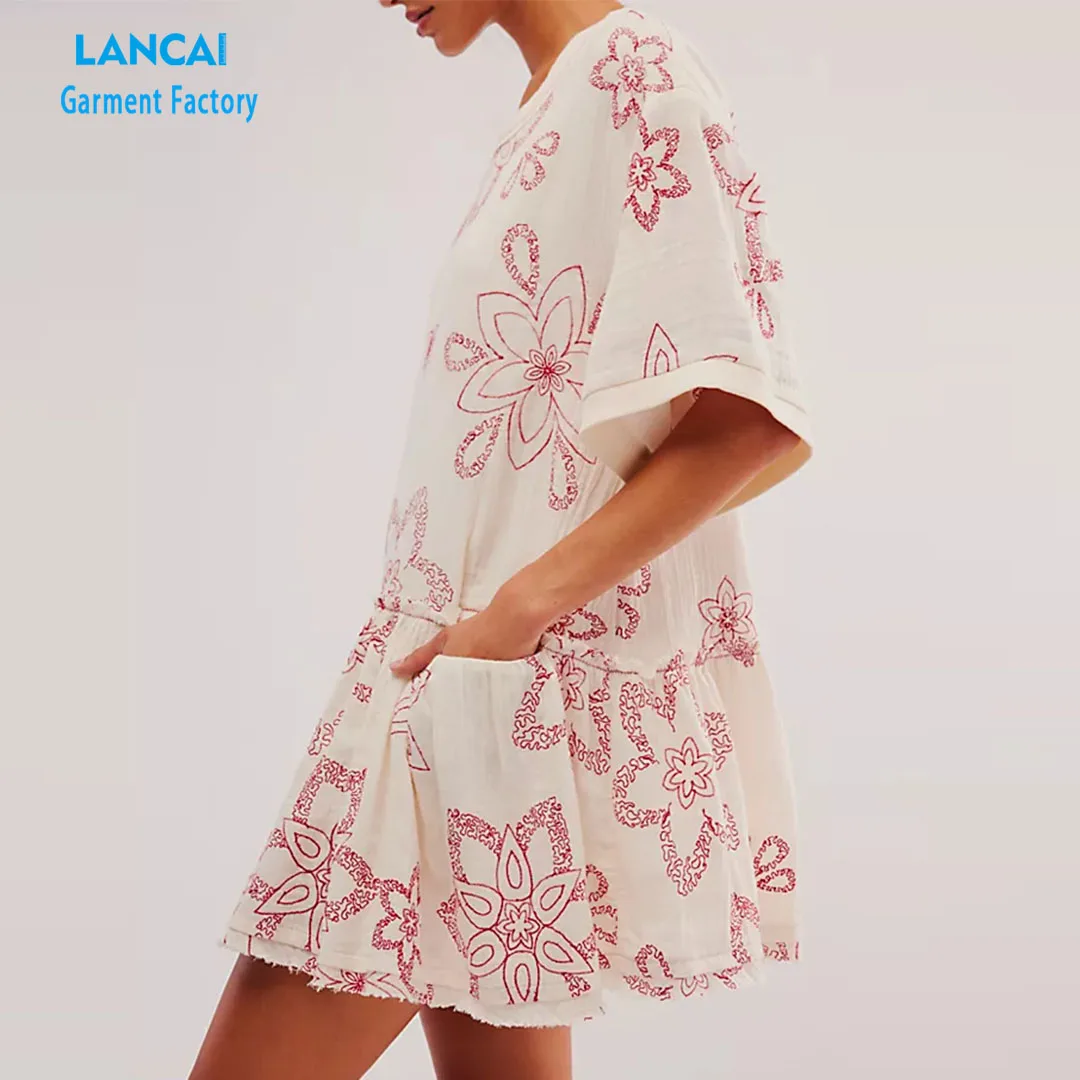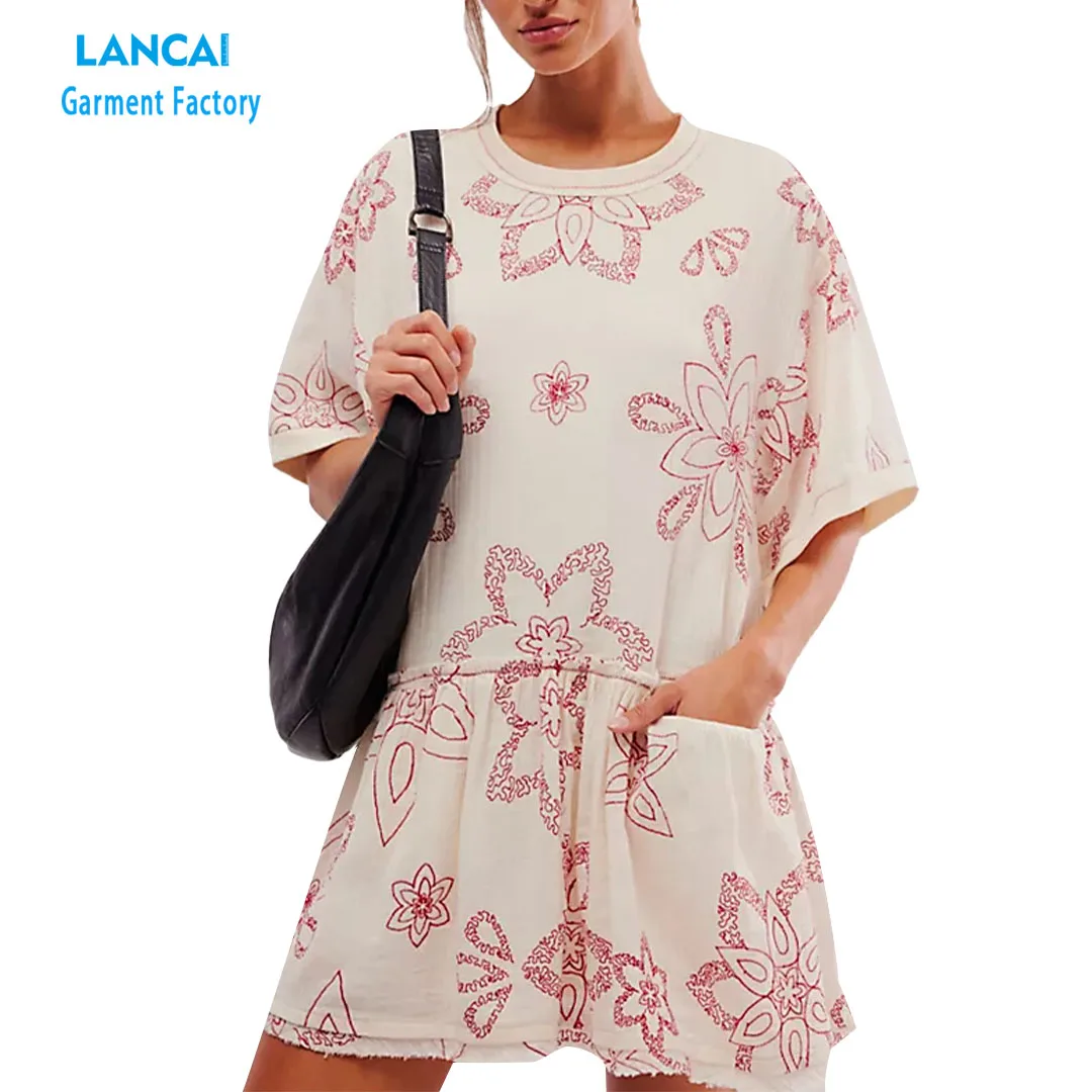 Women Casual Loose Dress With Pocket Ladies Fashion O Neck Long Tops Female T Shirt Dress