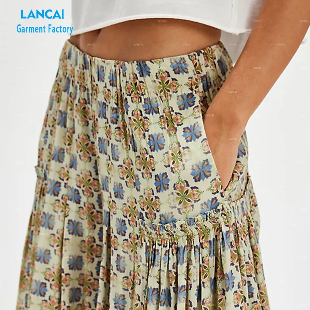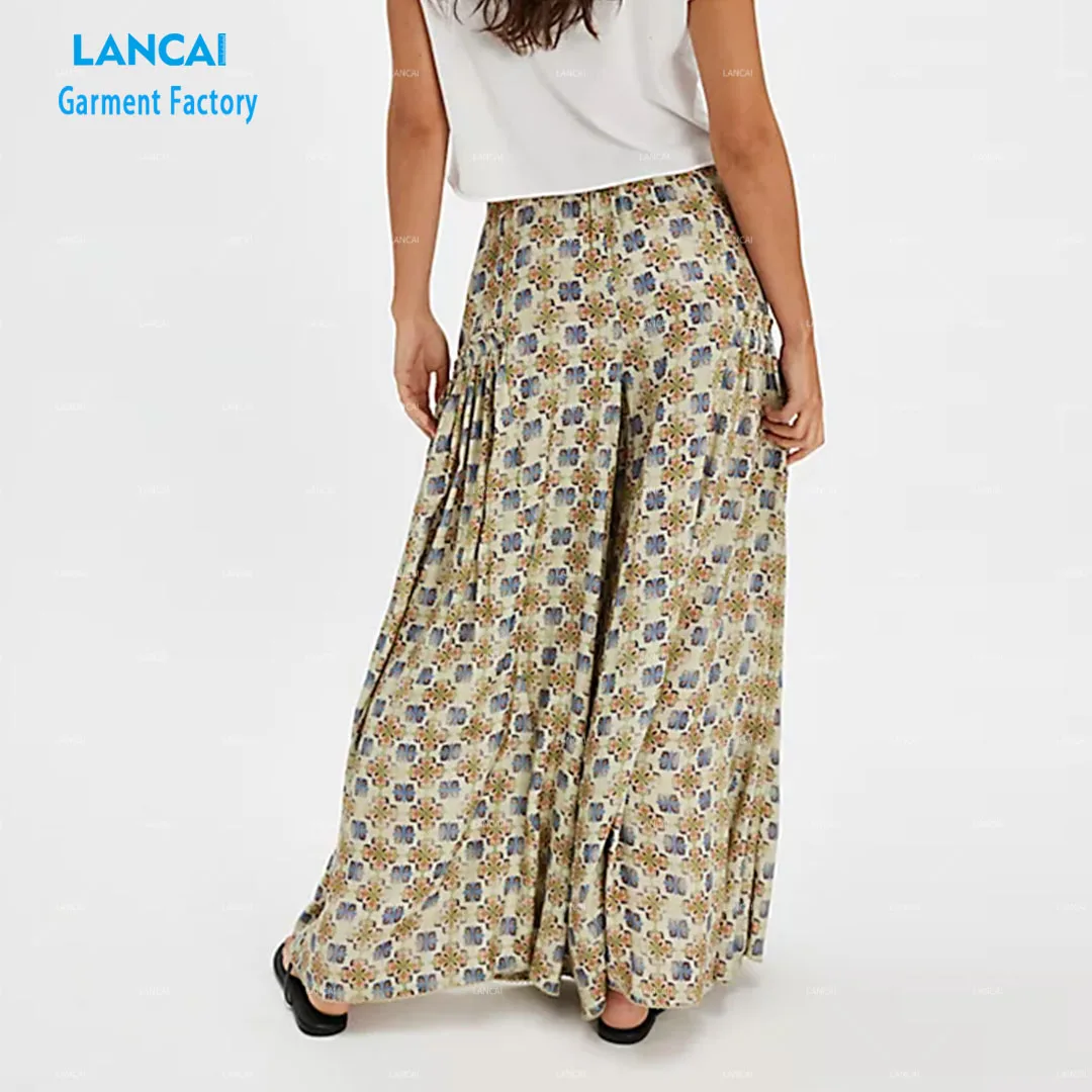 Custom Logo New Design Floral Printing Rayon Fabric Women Pant Loose Casual Pant for Women