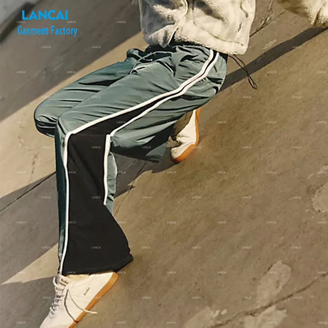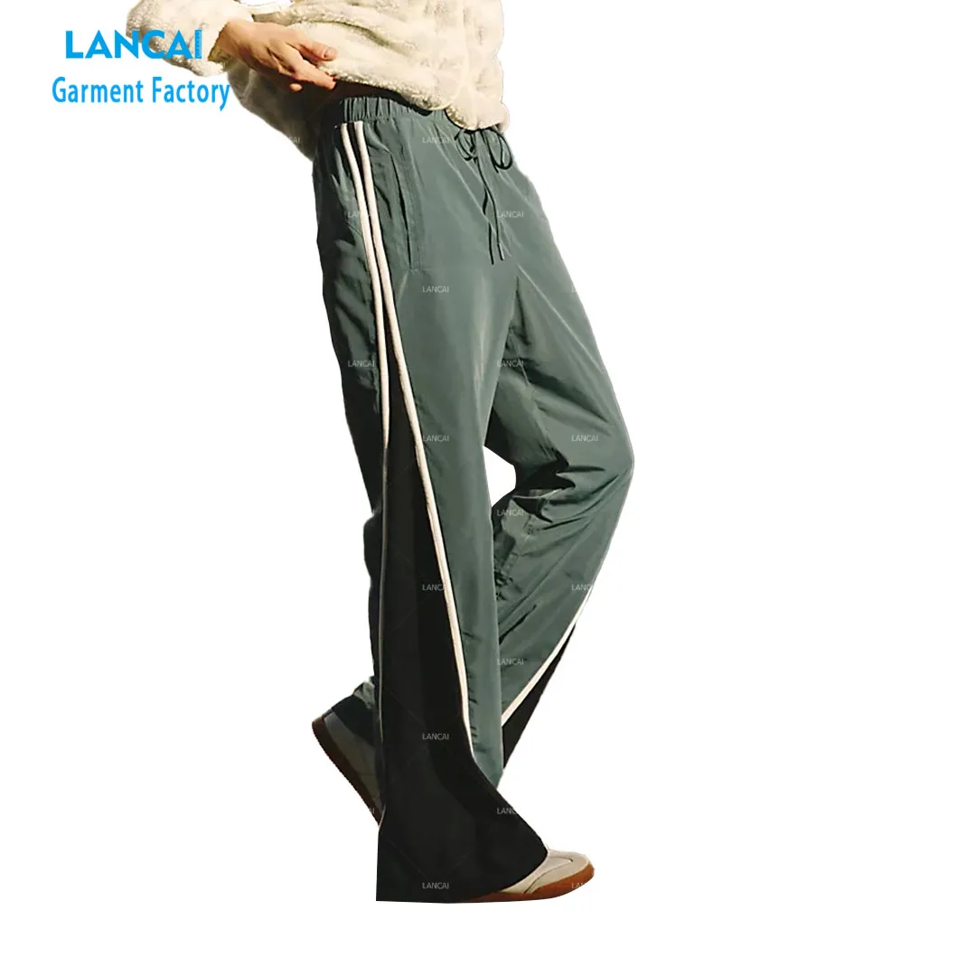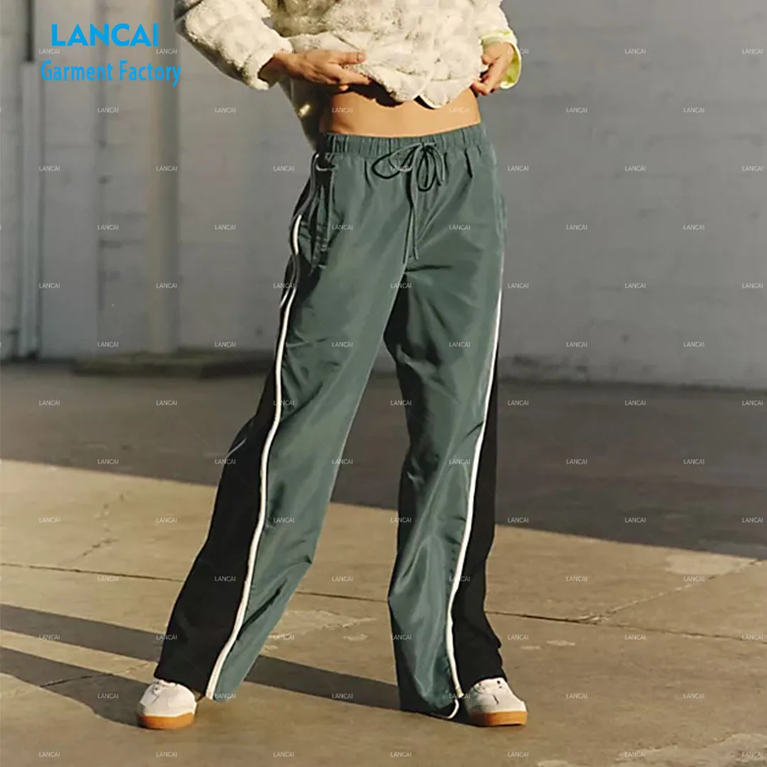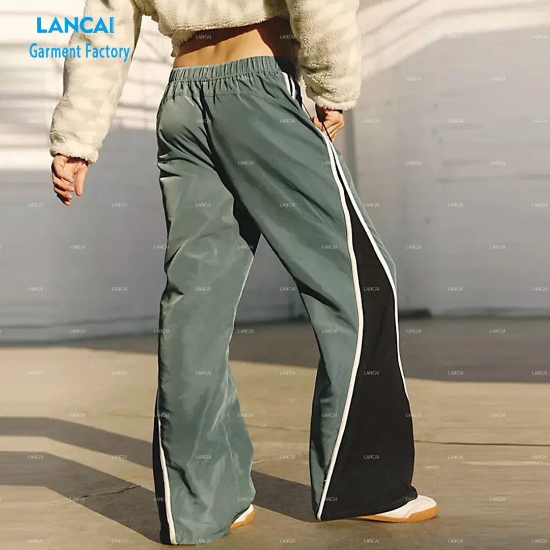 Custom Casual Color Block Flared Pants With Piping Wind-proof Nylon Cotton Women Street Wear
