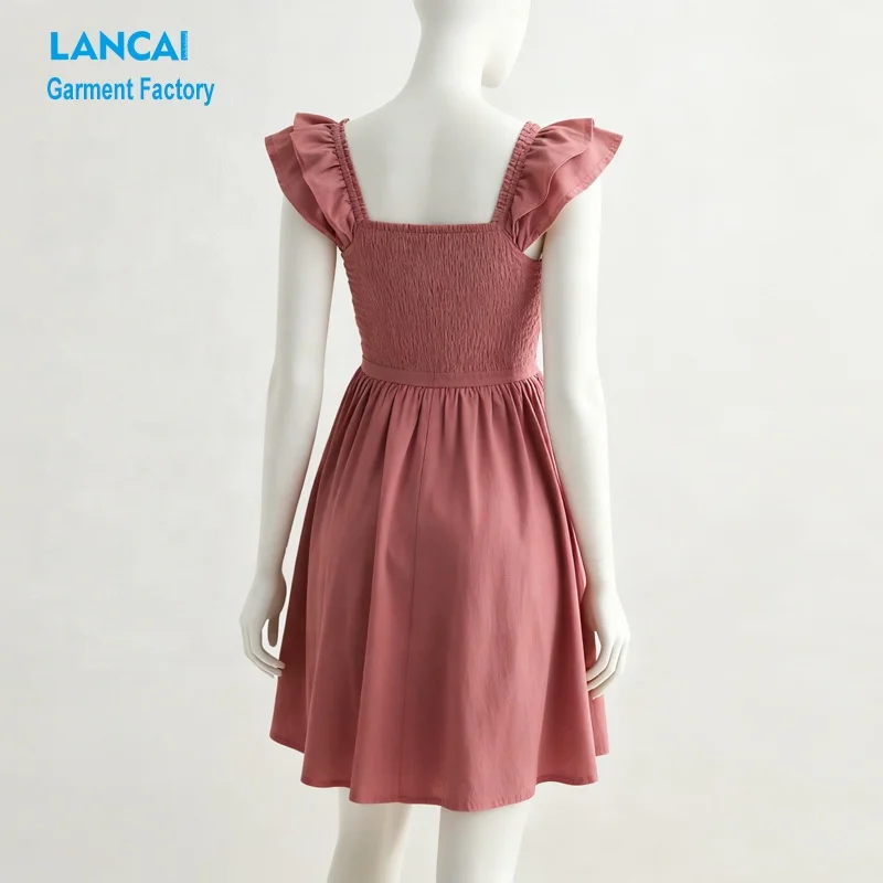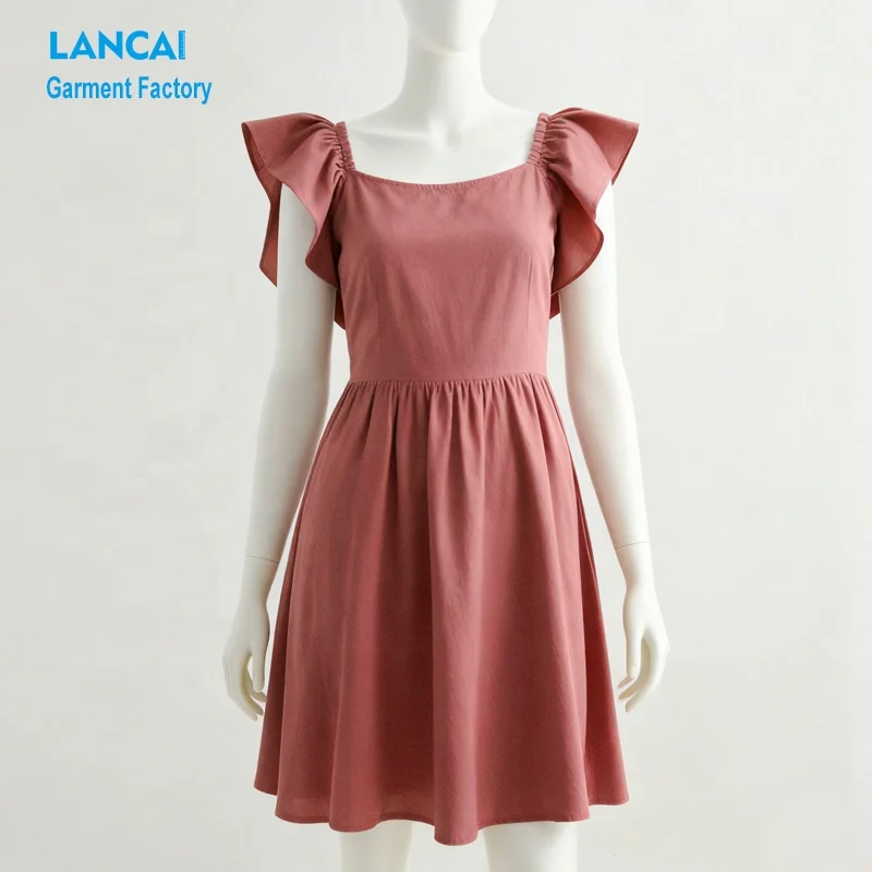 Ladies Summer Dress Manufacturer Custom Made Low Moq Cotton Holiday Vacation Beach Dress With Ruffle Shoulder