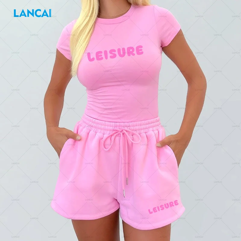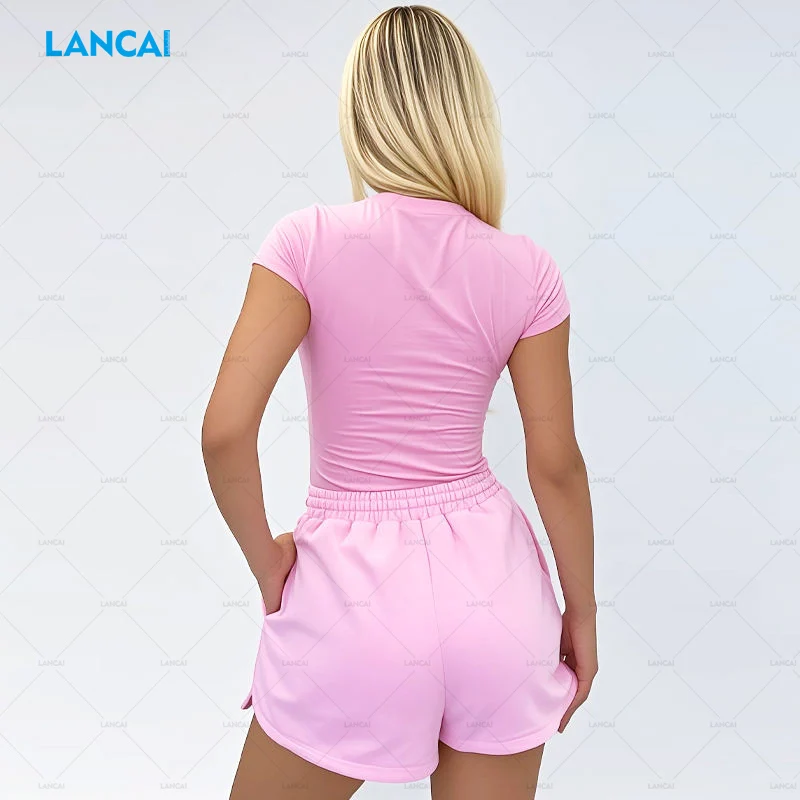Custom Two Piece Crop Top and Shorts Set Wholesale High Quality Biker Shorts Sets Casual 2 Piece Short Set for Women