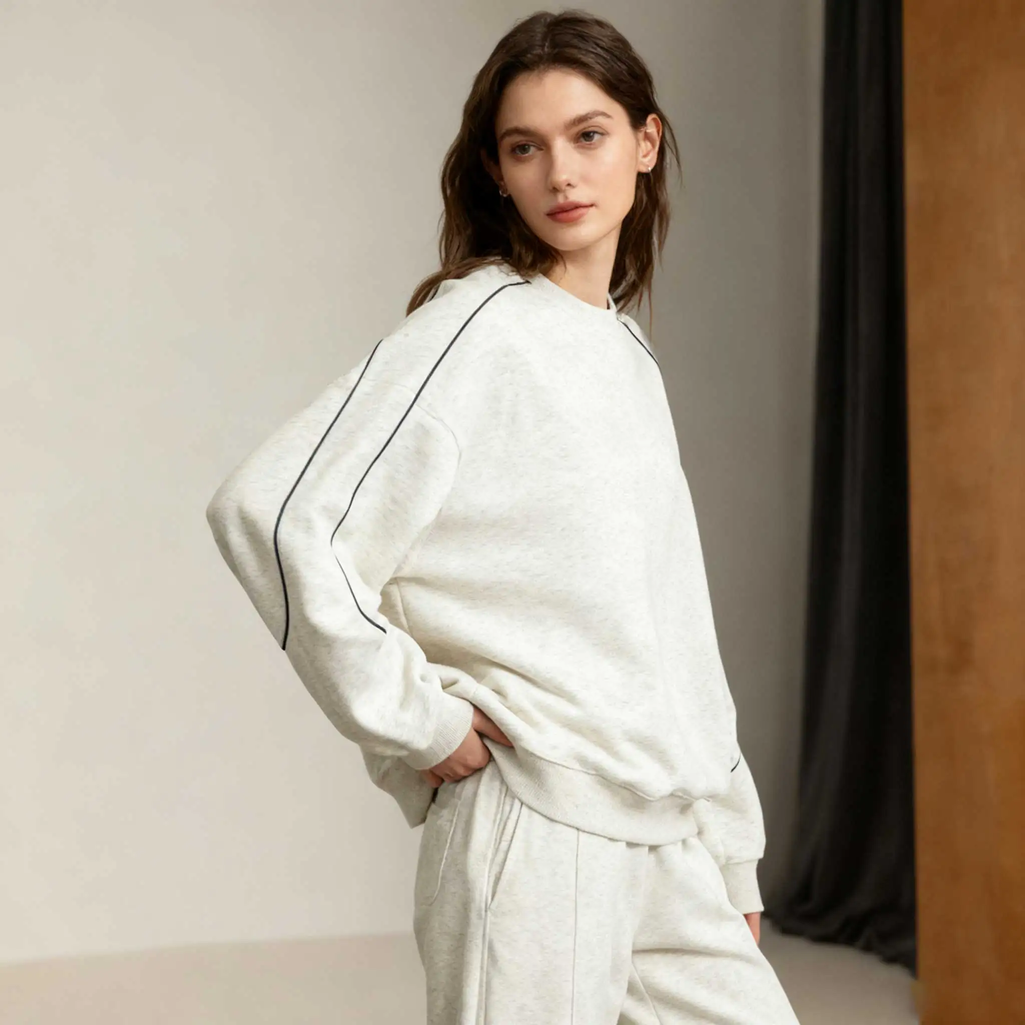 Autumn Spring Unisex Gray Sweatshirt-Three Black Stripes Comfortable Casual Pullover Quick Dry Anti-Wrinkle Waterproof