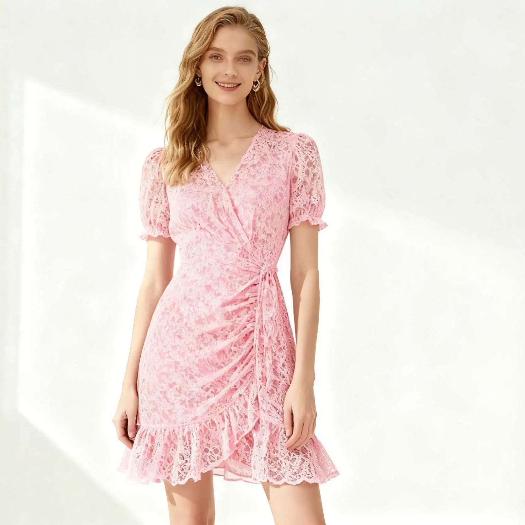 Summer Factory Custom Spaghetti Strap Sweet Natural Floral Dress-Woven Fabric Plus Size Short Sleeve Lightweight Breathable Lead