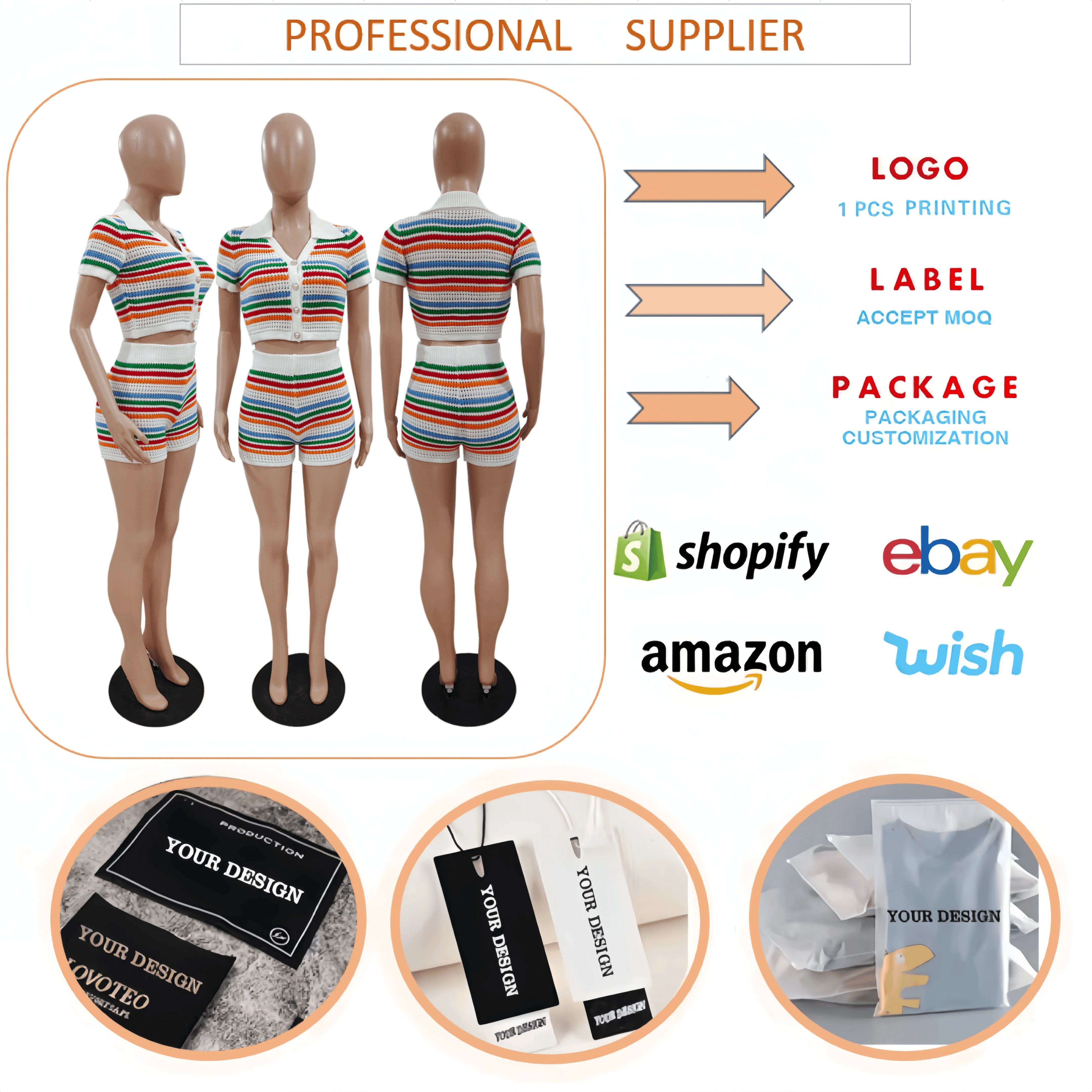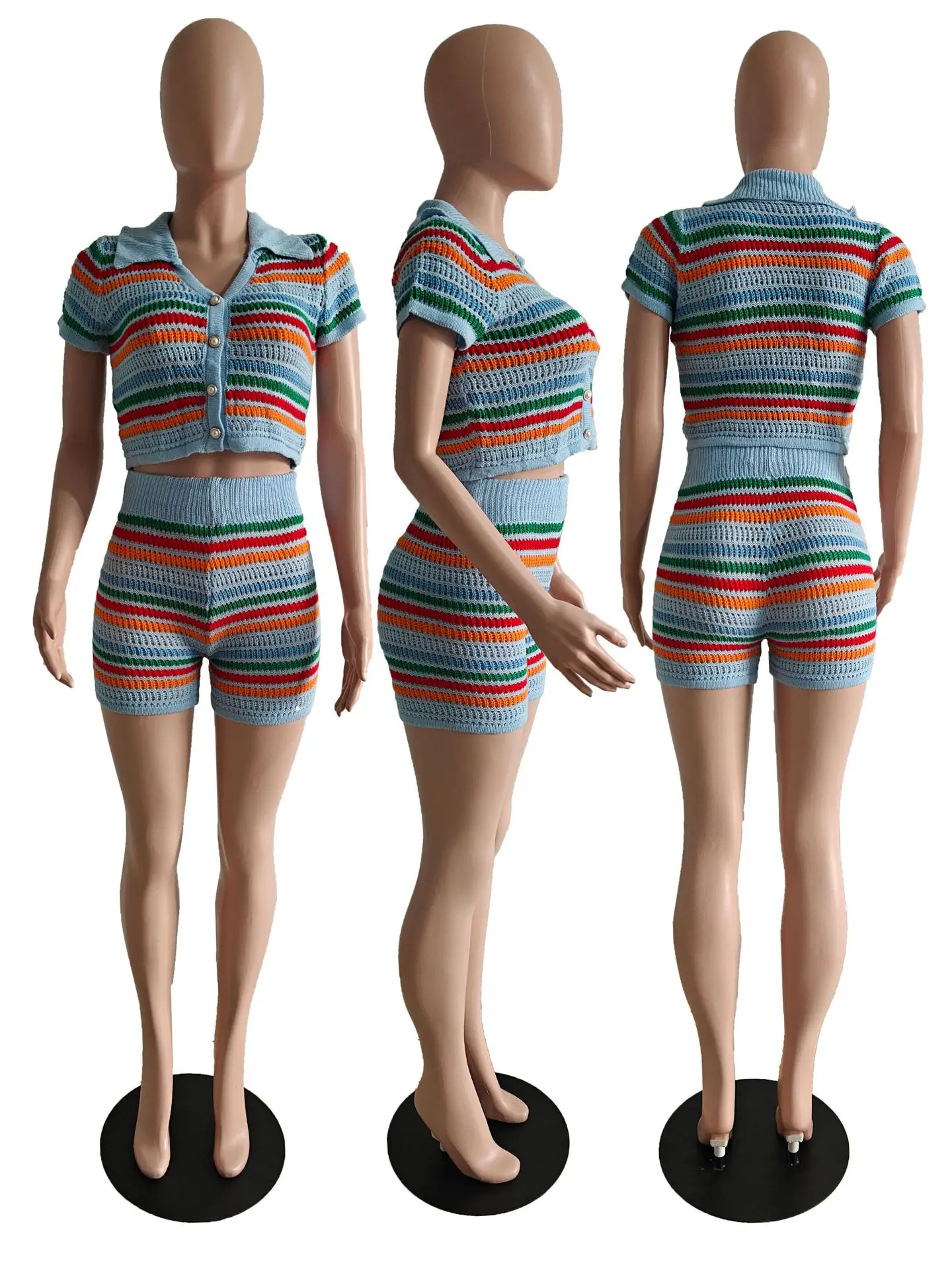 DY6901 Fashion Women Two Piece Set Ladies Suits Fashion Colorful Striped Knitted Clothing Set Cropped Tops Shorts 2pieces Set