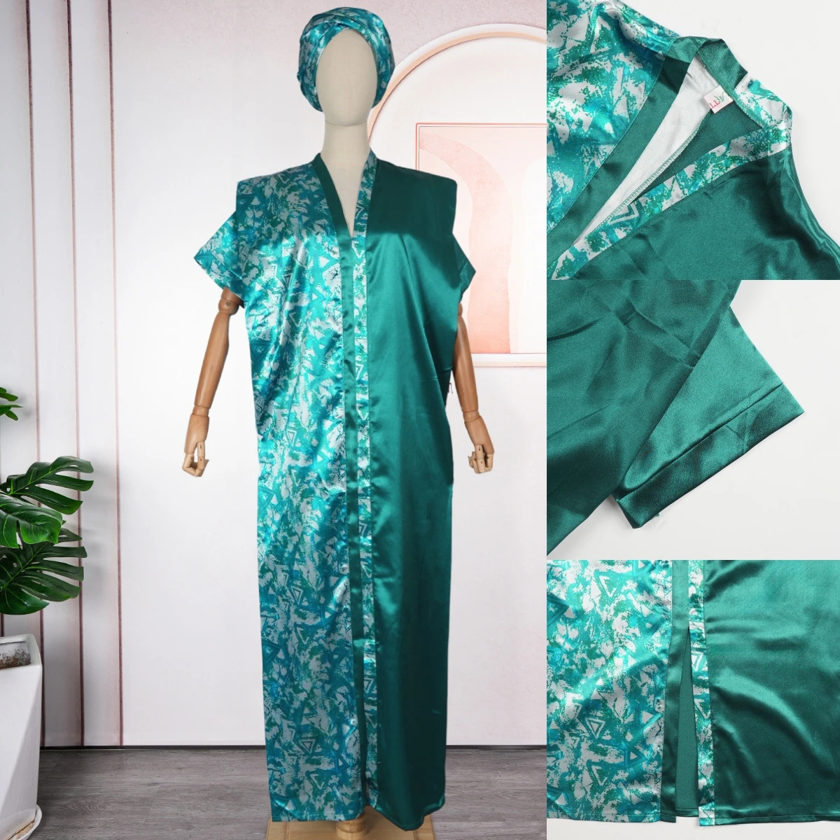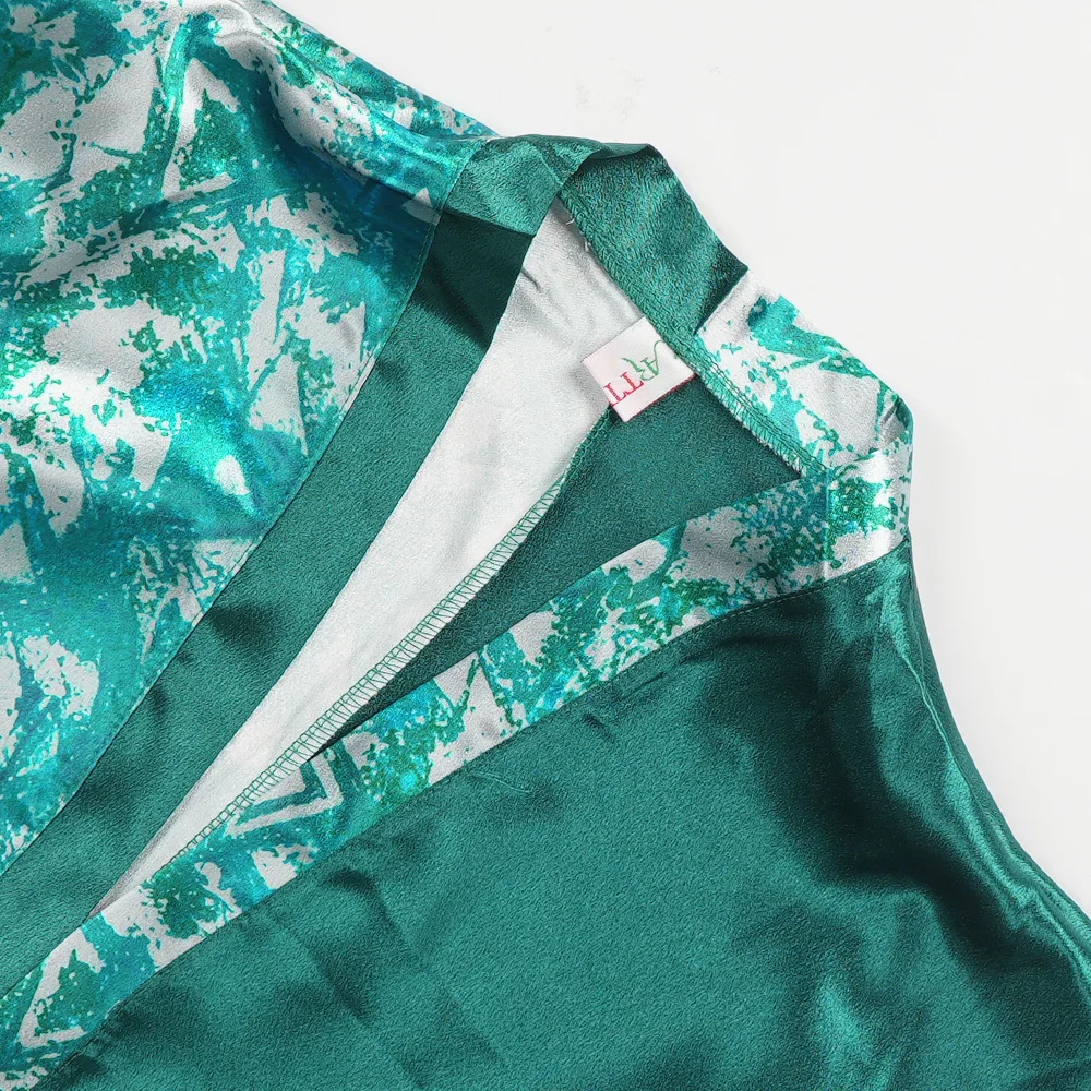 ZYHT 73963 Matte Satin Printed Geometric Pattern Maxi Women Asymmetric One Shoulder Ruched Hem Women Dress