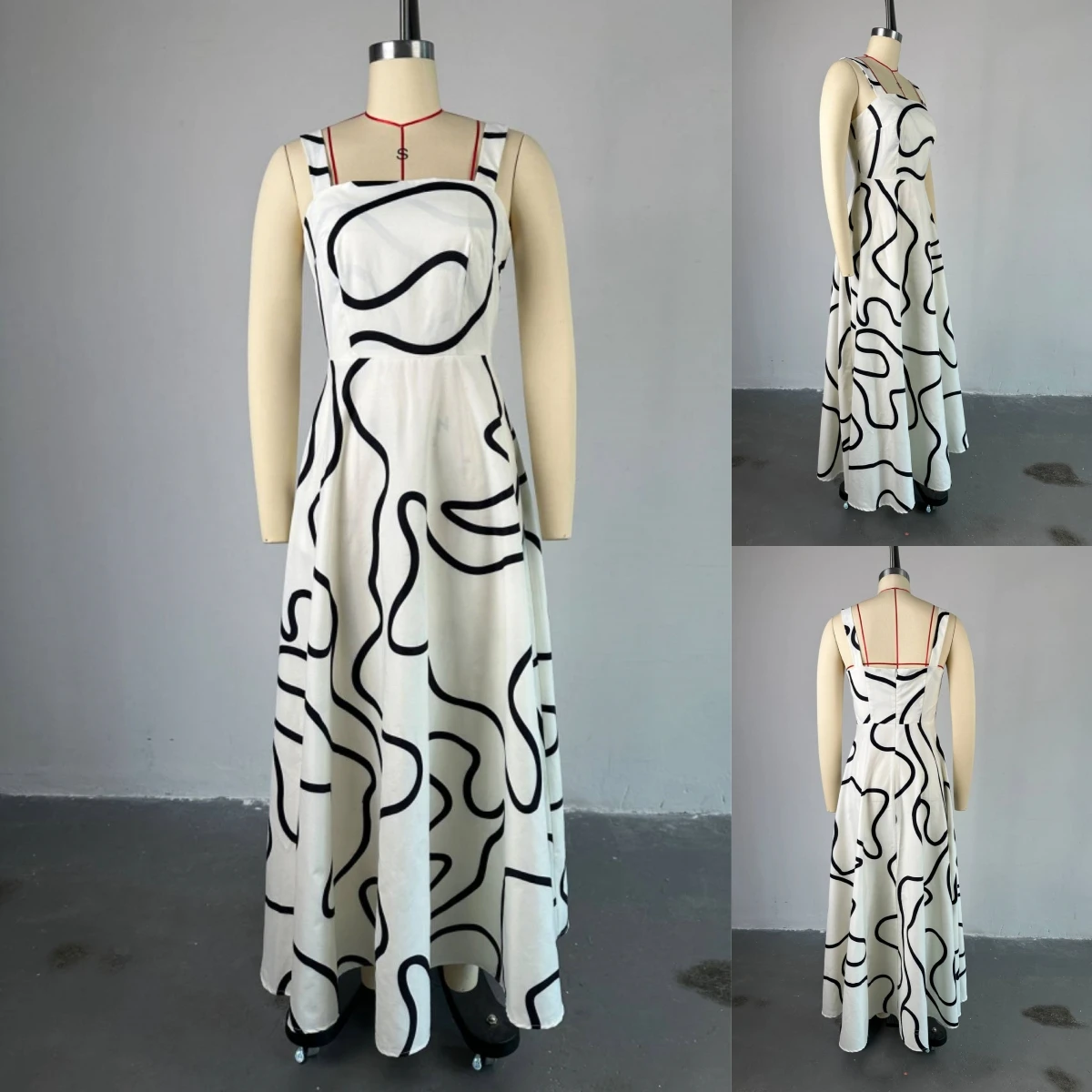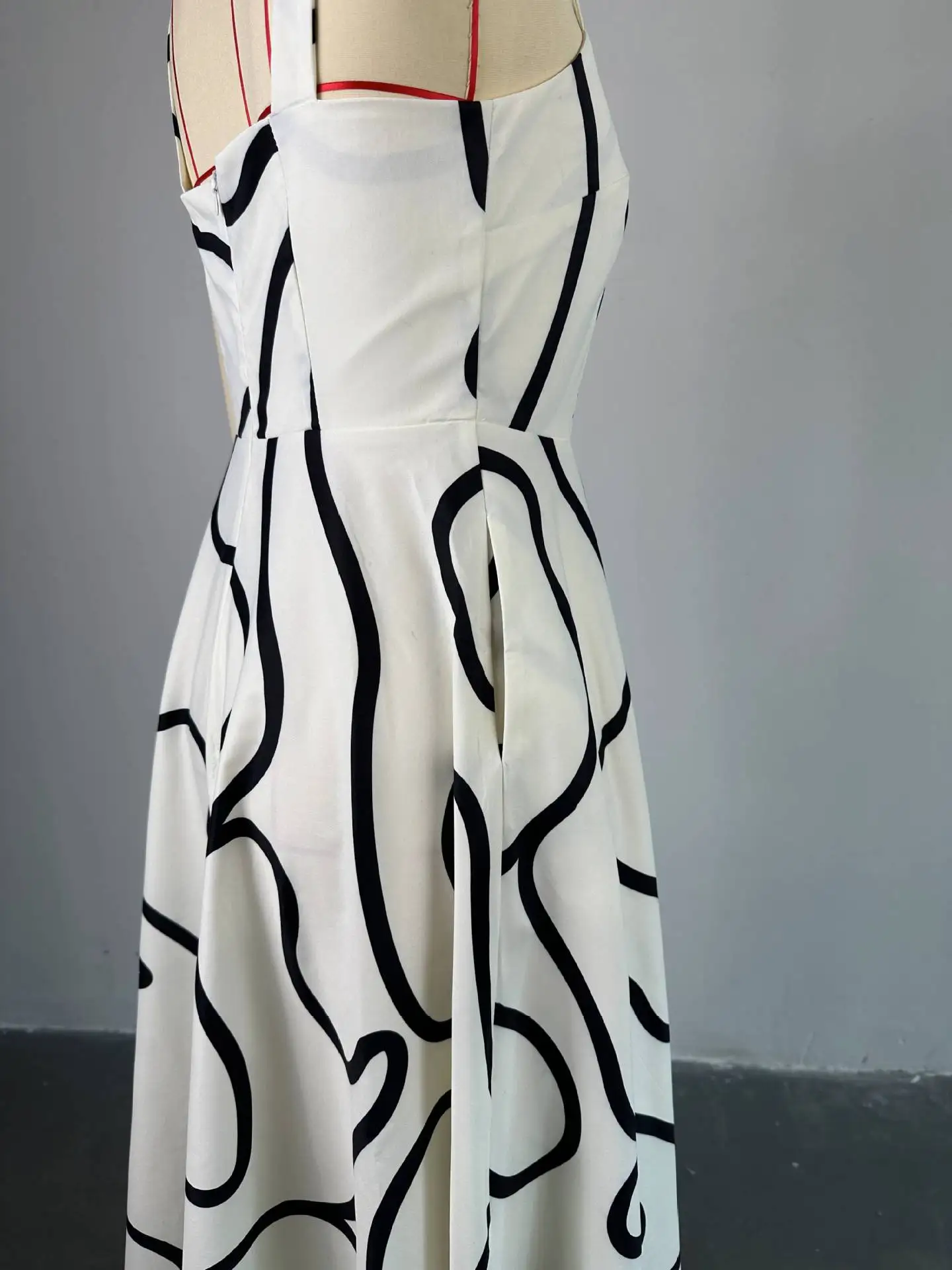 HK7527 Latest Design Square-neck Women Dress Printed Fitted Dress Accentuates Waist and Flatters the Figure Midi Halter Dress