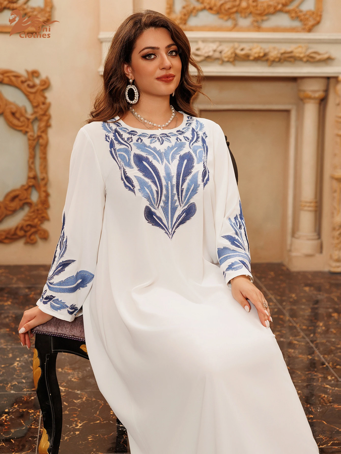 Elegant 2024 EID Embroidered Muslim Dress Women Clothing Dress