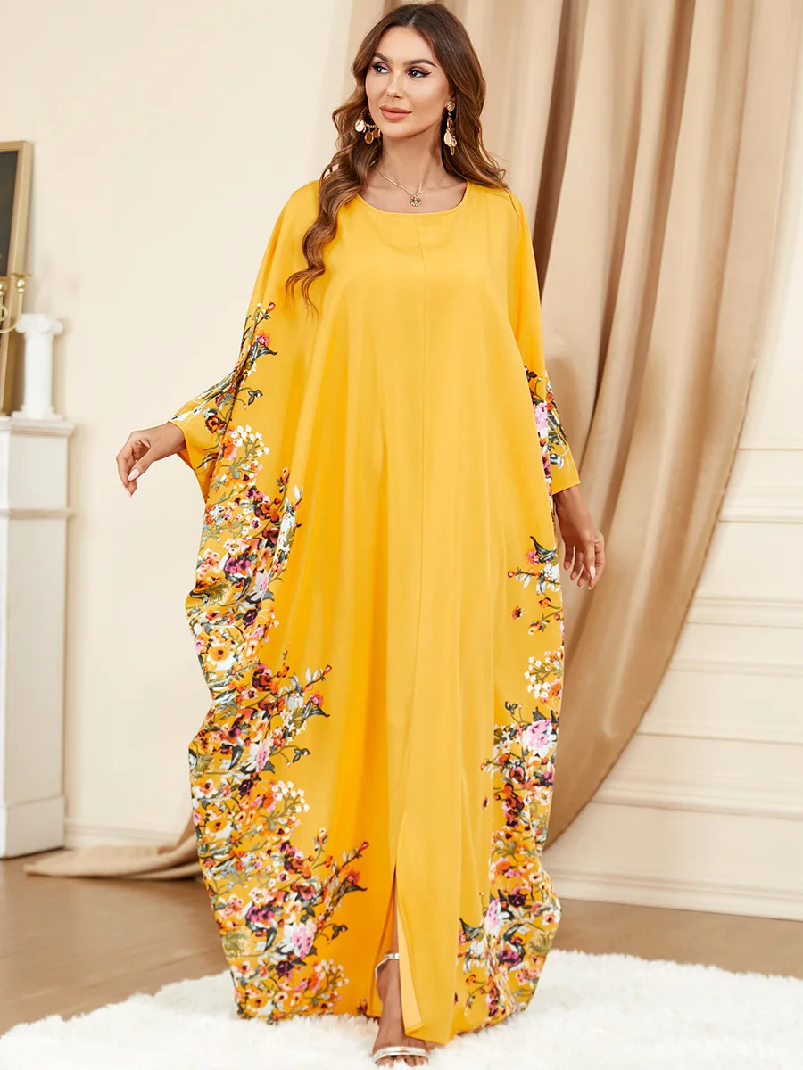 ZYHT 73571 Custom Elegant V-Neck Cape Sleeve Dresses Trendy Straight Yellow Maxi Party Gowns Modest Evening Dress for Women