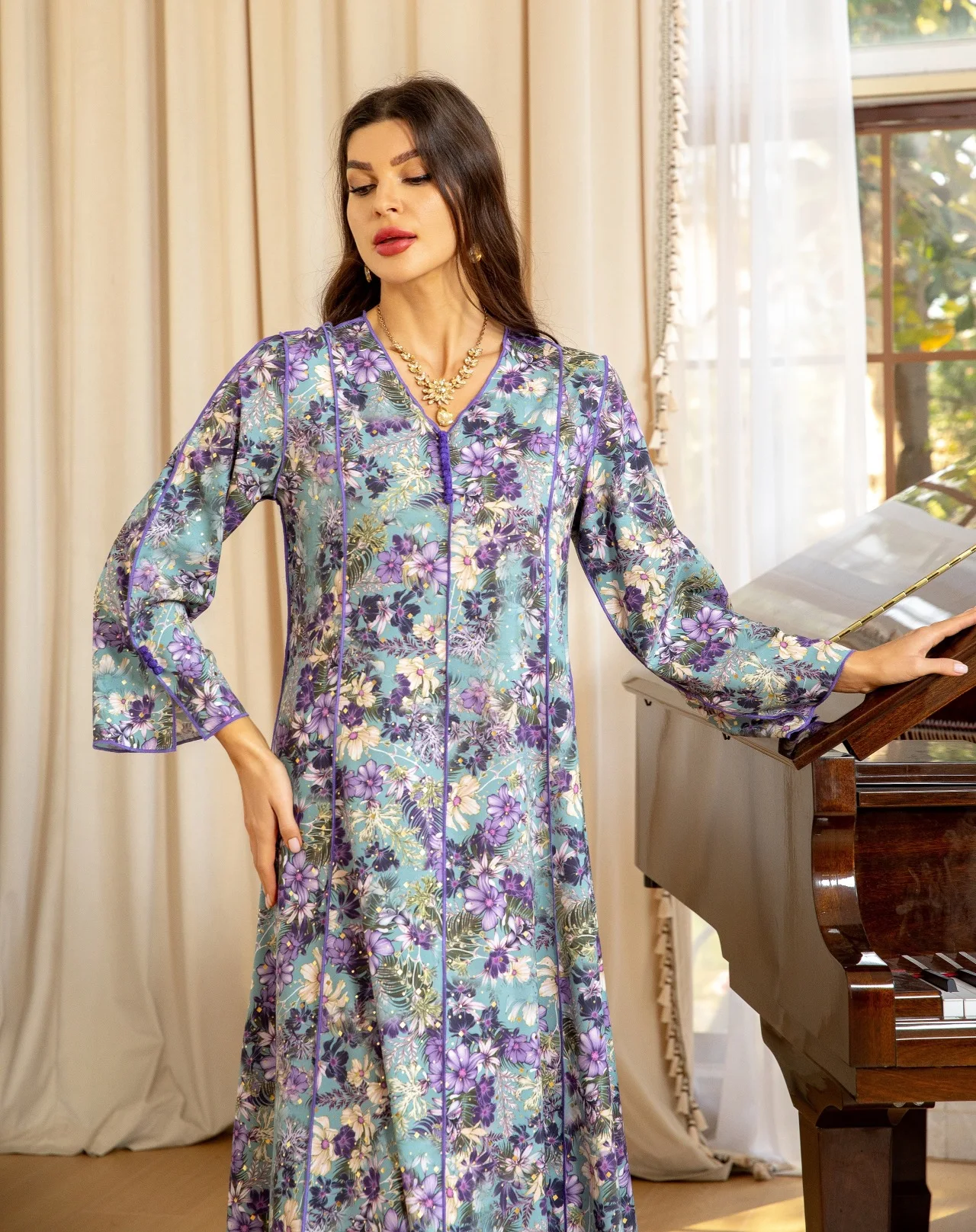 ZYHT 73902 Dark Green Blue Long Sleeve Simple Elegant Evening Dress Customize High End Women Clothing Manufacturer