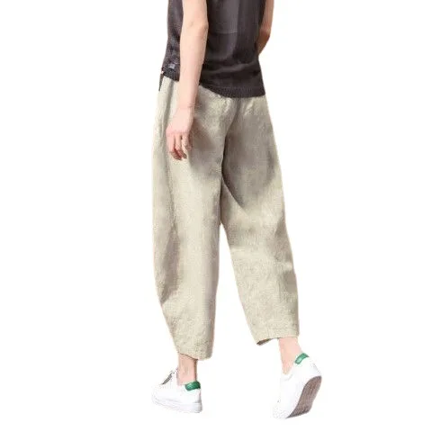 Wholesale 2026 Summer New Cotton and Linen Women's Pants Loose Solid Color Thin Nine-point Harem Pants Women's Pants