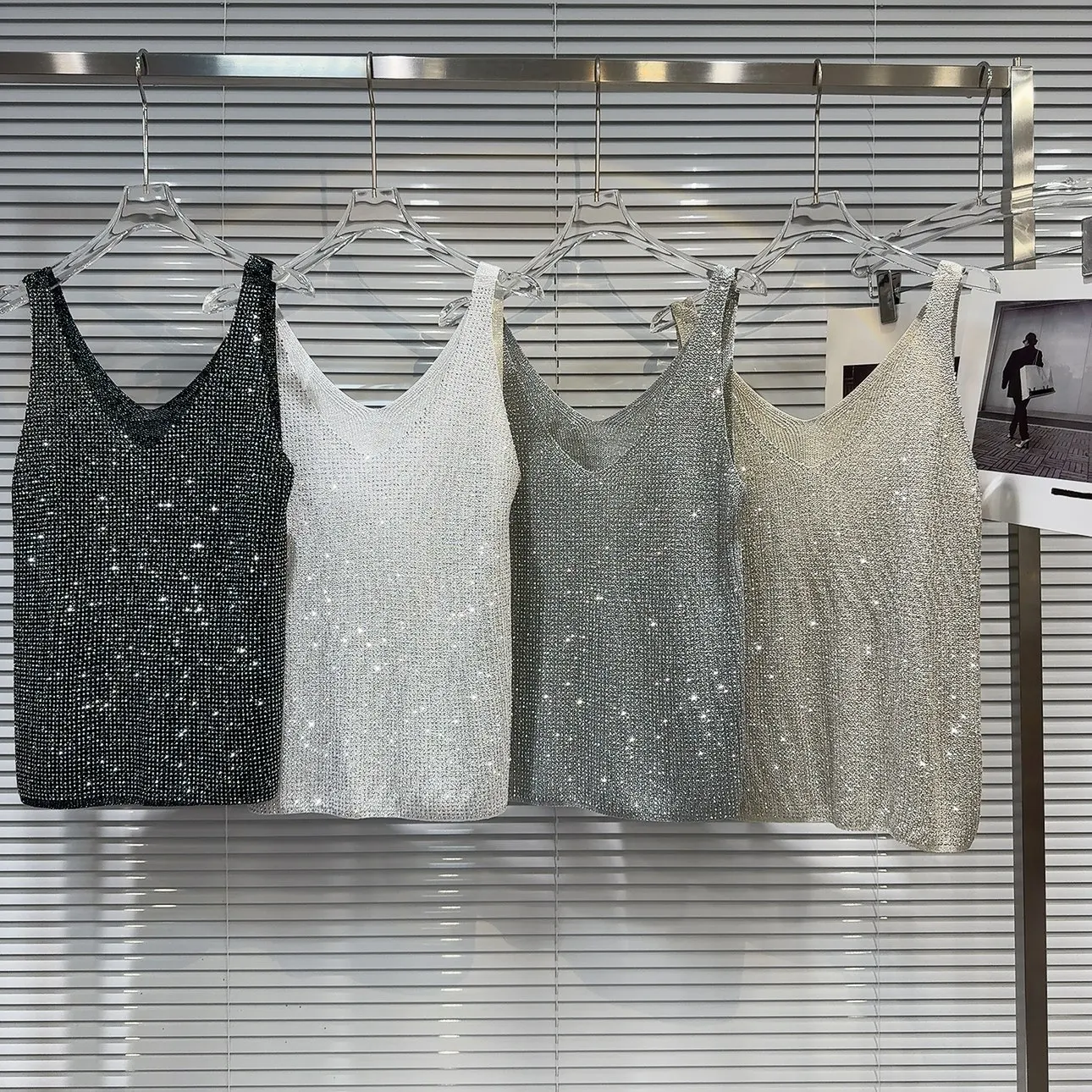 Wholesale Spring 2026 New Fashion Casual Sexy Rhinestone Hot Diamond Temperament Celebrity Knitted Suspender Women's Vest