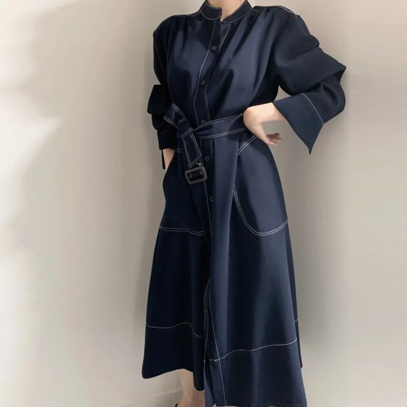 Wholesale 2026 Spring and Autumn Women's Korean Elegant Temperament Dress Women Loose Long Sleeves Long A-line Dress