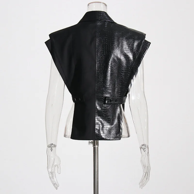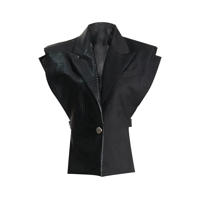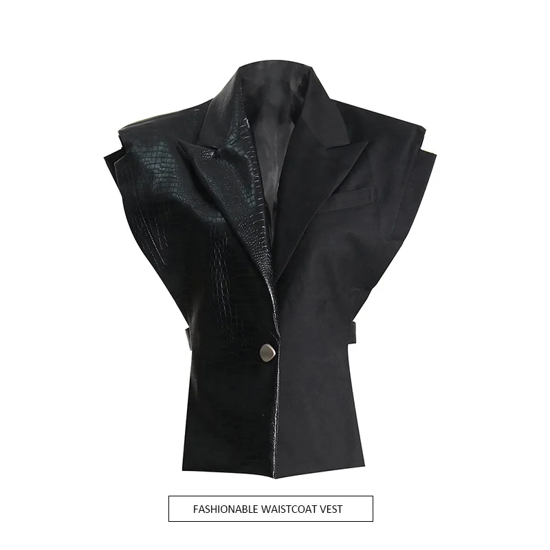 Wholesale 2026 New Fashion Elegance Temperament Alligator Leather Splicing Suit Cloth Women's Vest Vest