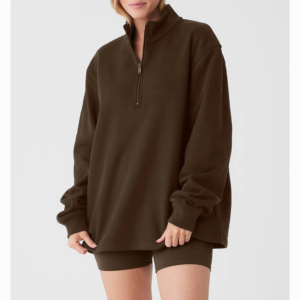 High Quality Color Block Cotton Polyester Sweatshirt Women's Baggy Half Zip Tracksuit Custom Logo Autumn Winter Printed