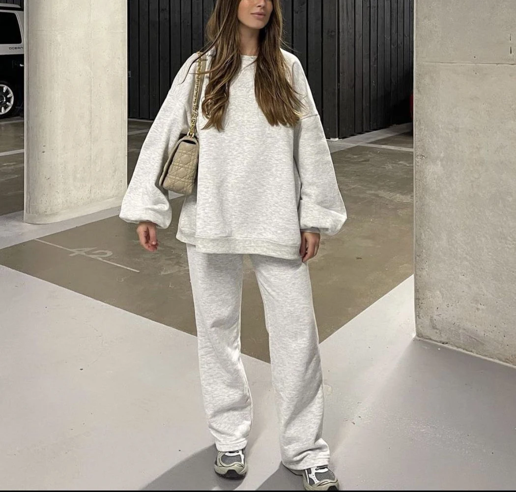 Women's Clothing Casual Sets for Women Wholesale Latest Design Tracksuit Custom Knitted Wide Leg Pants and Sweatshirt Set