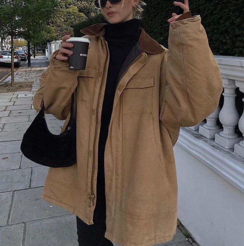 Factory Wholesale Brown Canvas Barn Jacket Women Vintage Workwear Oversized Cotton Field Coat Outdoor Autumn Outerwear
