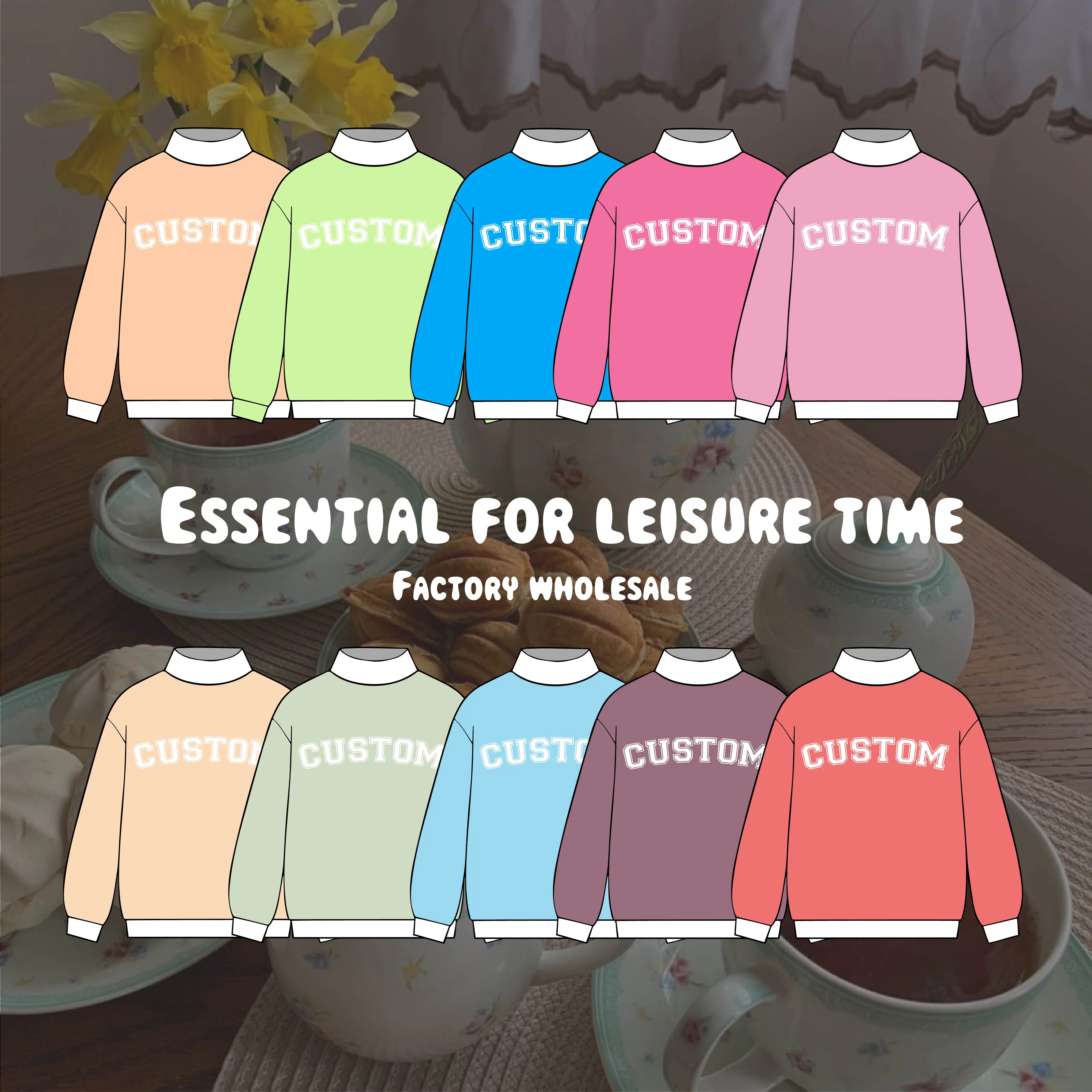 Factory Wholesale Custom Embroidered logo Mockneck Sweatshirt Women Daily Wear French Terry Cotton Oversized Pullover Sweatshirt