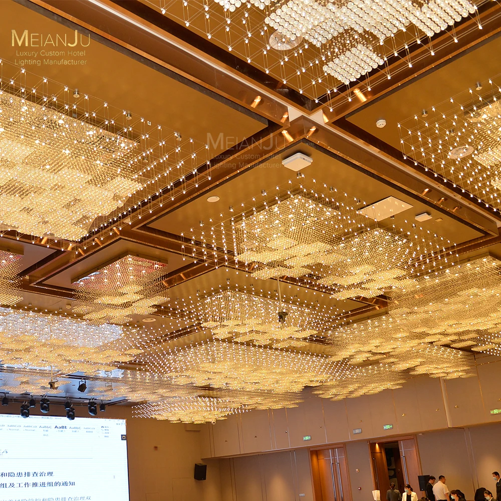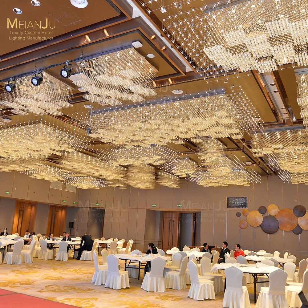 Wedding Hall Chandelier Hotel Hanging Pendant Light Customized Amber Crystal Chandelier Lighting for Lobby