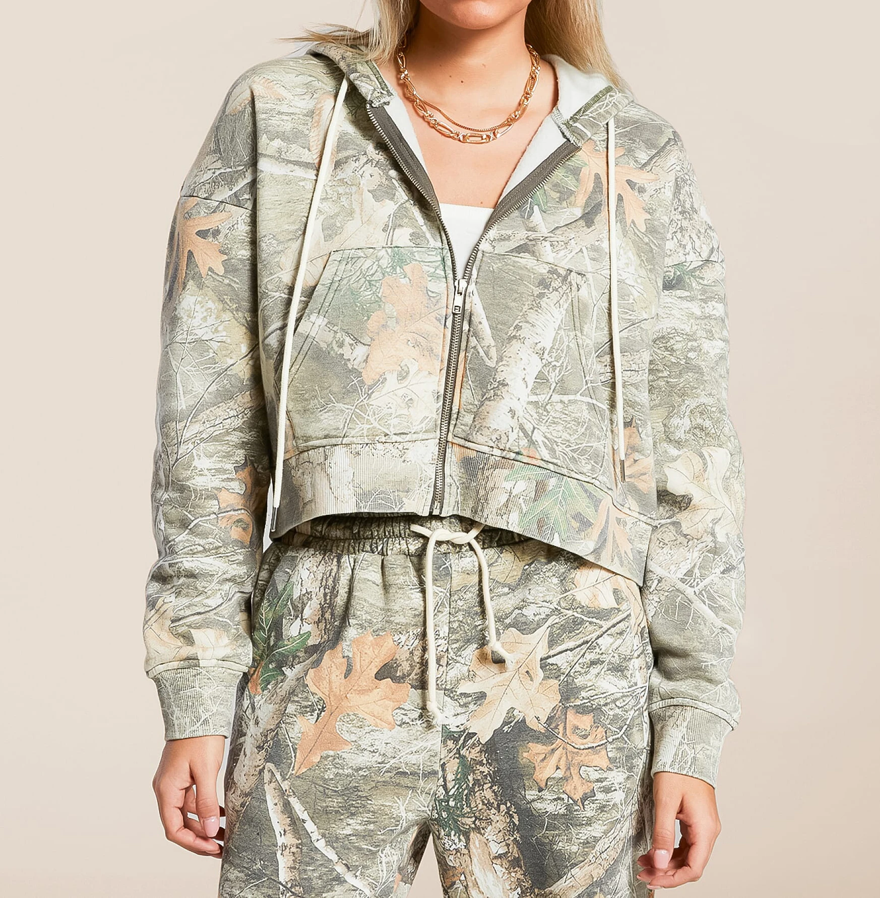 High Quality Custom logo Printed Full Zip up Pullover with Drawstring Oversized Camo Hoodie Women Daily Wear