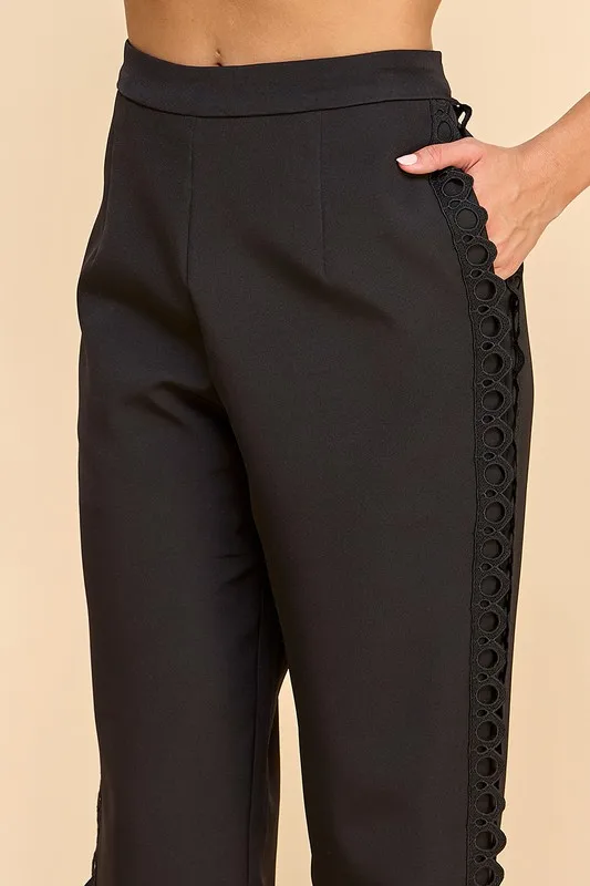 Women's Autumn Solid Black Long Sleeve Blazer Suit Set Lace Accents Tie Details Button Zipper Hole Decorations Stylish Office