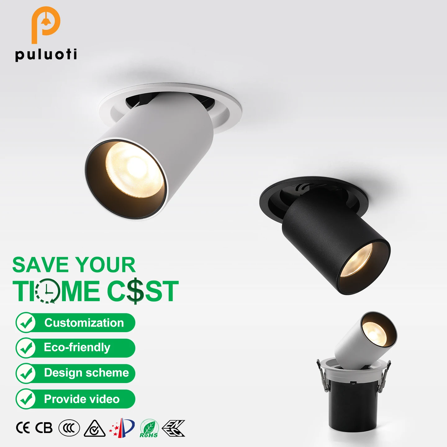 PULUOTI Modern Aluminum LED Recessed Spot Light Adjustable Angle High CRI97 3-Year Warranty Indoor 24 Beam Angle for Residential