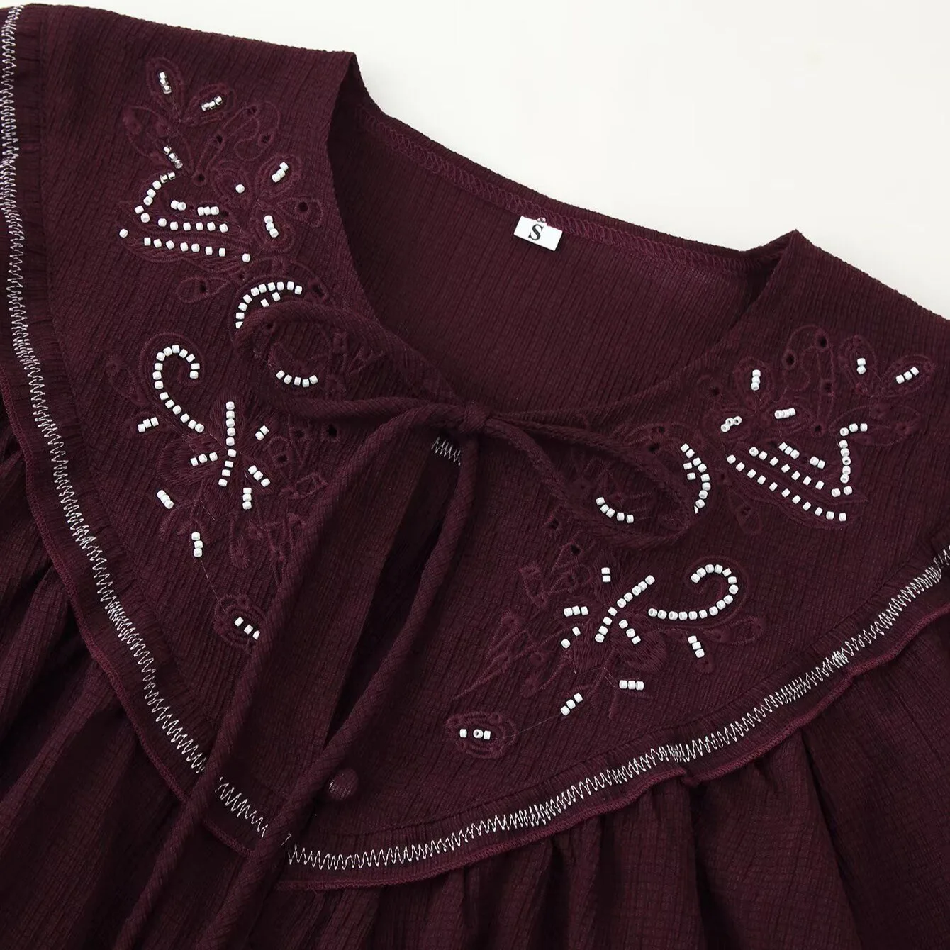 European and American Style Cute Women's Loose Fit Spring Floral 3D Beaded Embroidery Polyester Long Sleeve Shirt