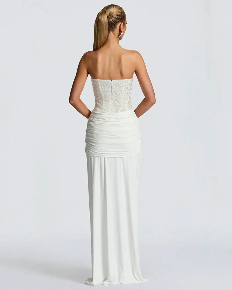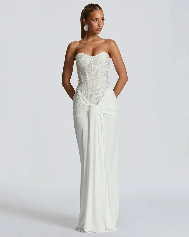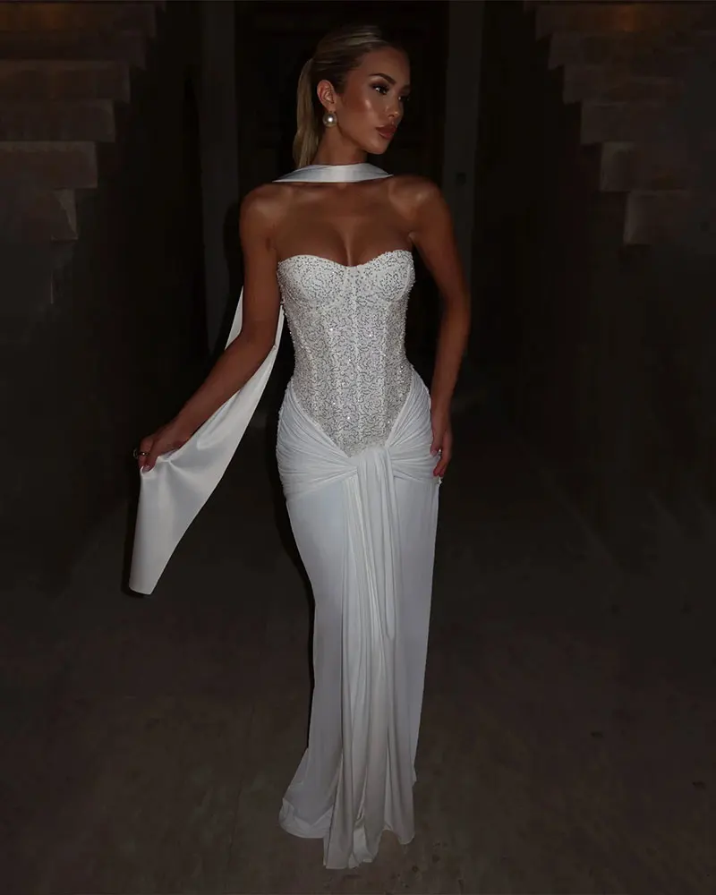 Elegant Strapless Sequin Sleeveless Maxi Dresses Patchwork Back Zip Sexy Bodycon Women's Evening Club Party Long Dresses
