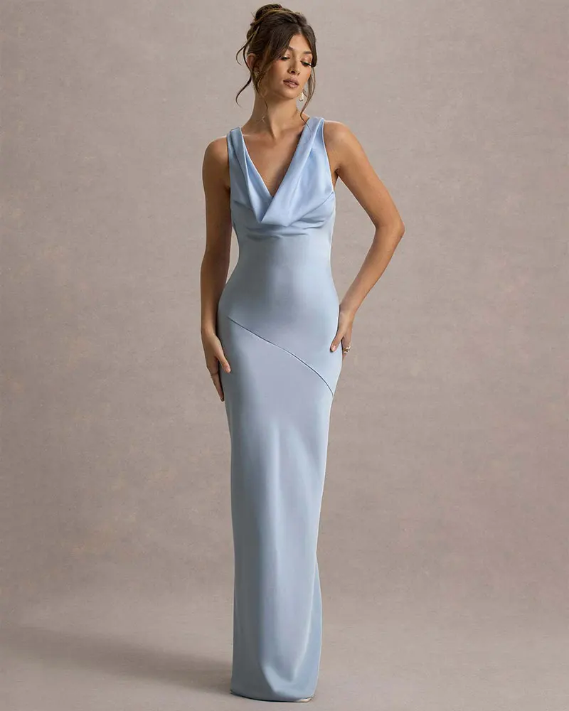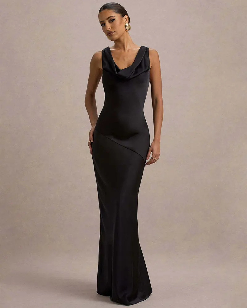 Satin Elegant Maxi Evening Dress Women Sleeveless Slim Robe Gowns Sexy Bodycon Club Party Long Dresses Vestido