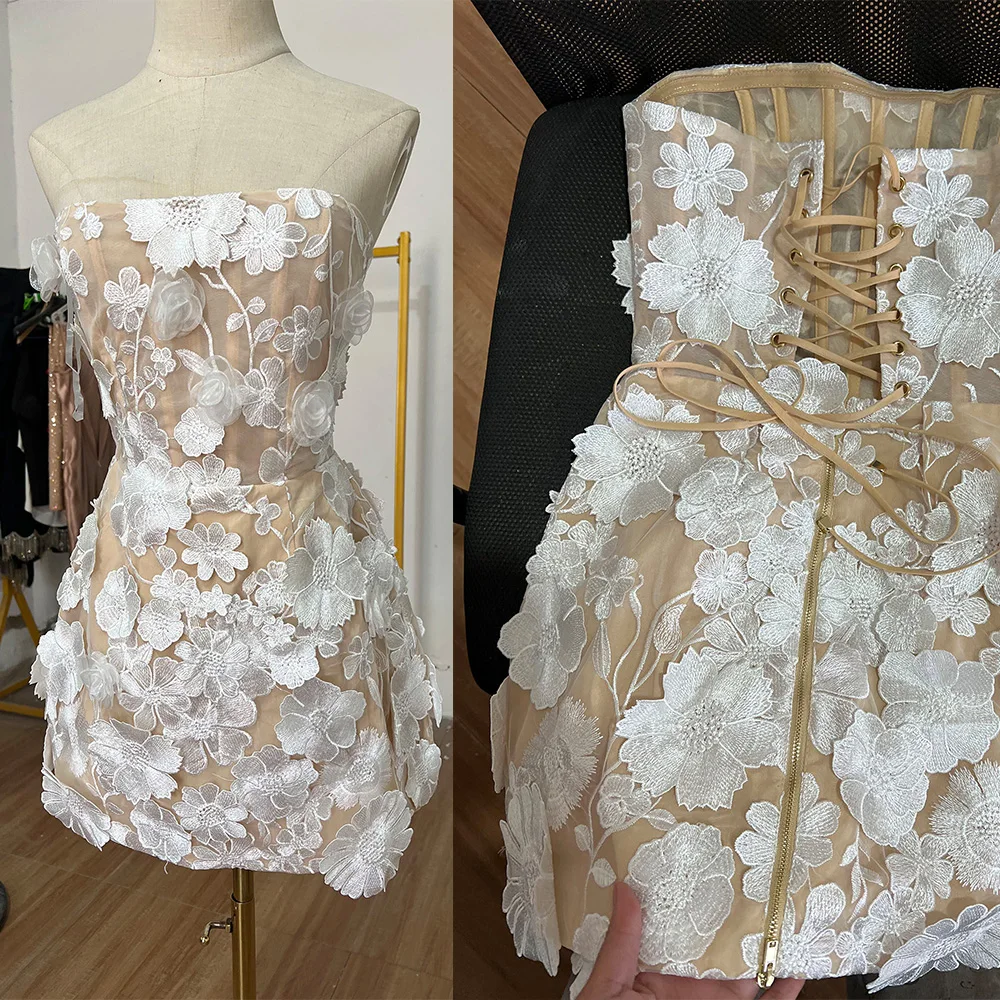 2025 Evening Dress Party Sexy White Dress 3D Floral Lace Embroidery Slim Fit Elegant Short Dress for Women Custom Luxury Fashion