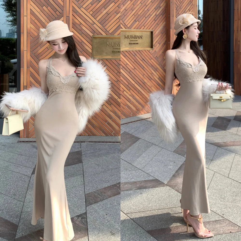 ZYHT 73957 Hot Selling Women Lady Printed Satin Beige Mermaid Fish Tail Floor Length Party Cocktail Evening Dress Gown