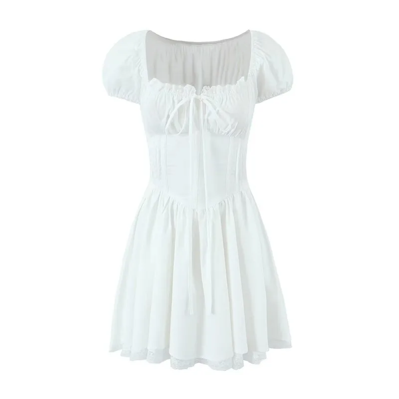 Women's Gothic Lolita Empire Waist Stand Collar Anti-Static Mini Dresses Vintage Punk Puff Sleeve a Line Swing Short Dress