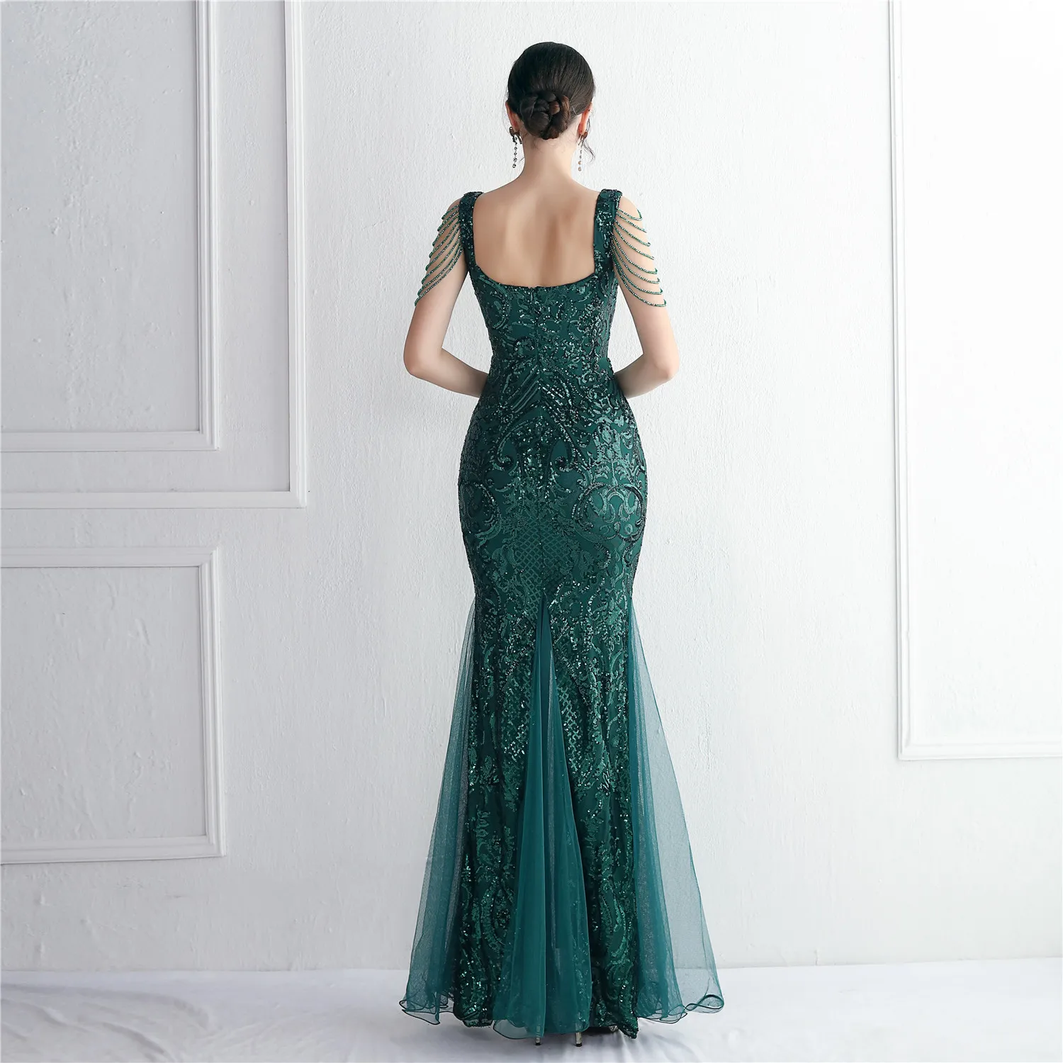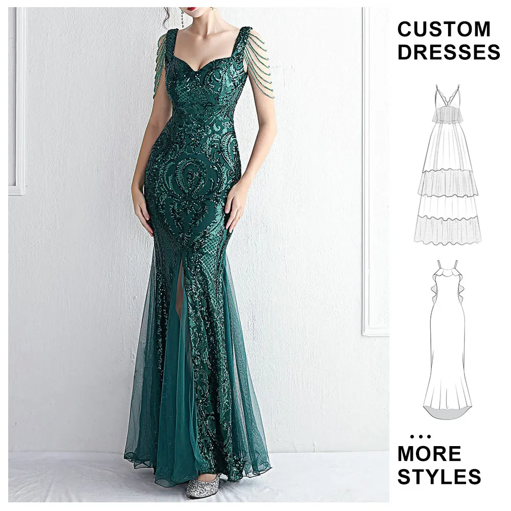 Custom OEM High -quality Women Luxury Ball Gown Long Dress Sequin Maxi Slit Deep V Bodycon Ladies Elegant Evening Dress
