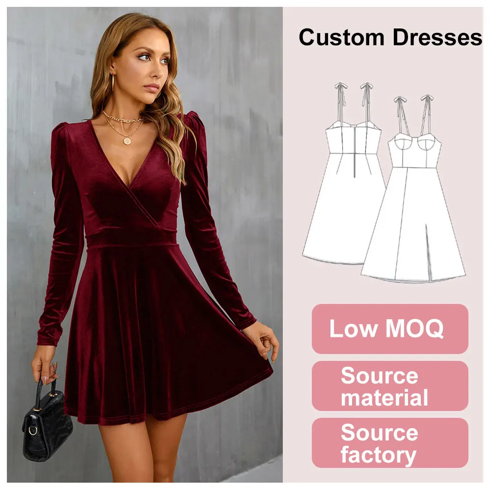 ZYHT 21541 Wholesale Crew Neck High Waist Casual Dresses Elegant Lace Velvet Mermaid Hem Ruched Long Sleeve Dresses for Women