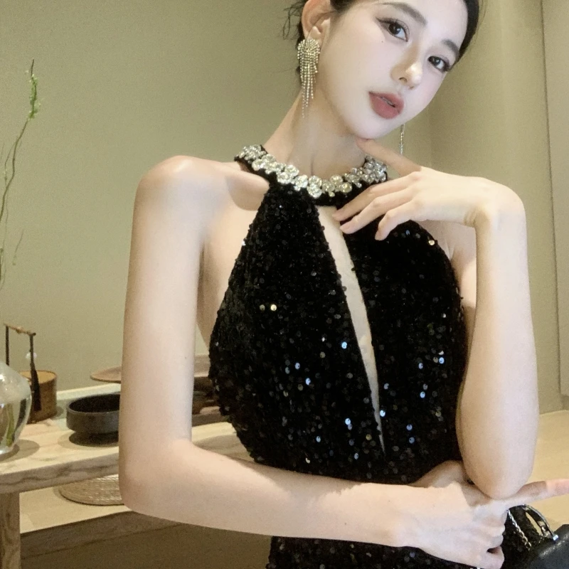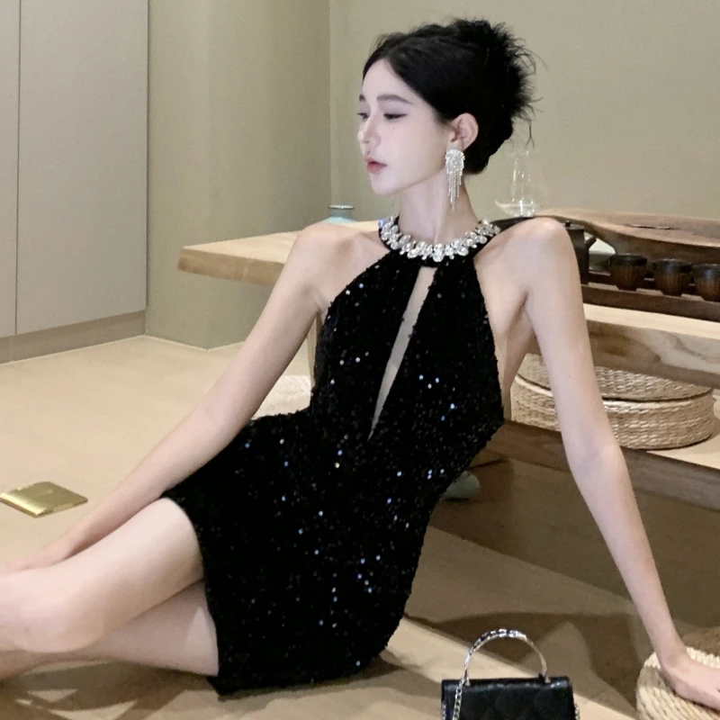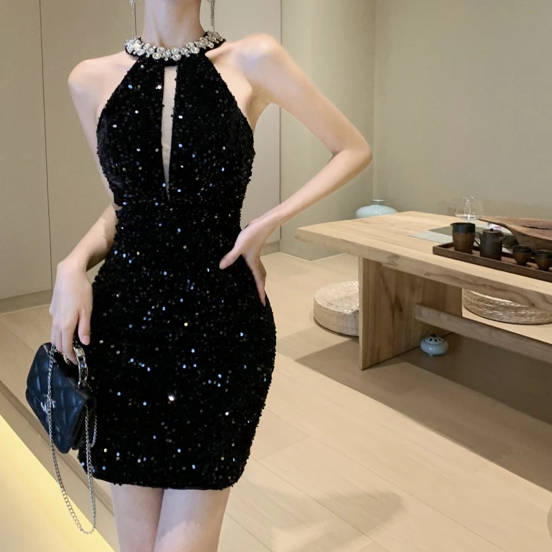 Fashion Sexy Women Hanging Neck Dress for Women With Shiny Sequins and Diamond studded Design Dresses Bodycon Wholesale Clothing