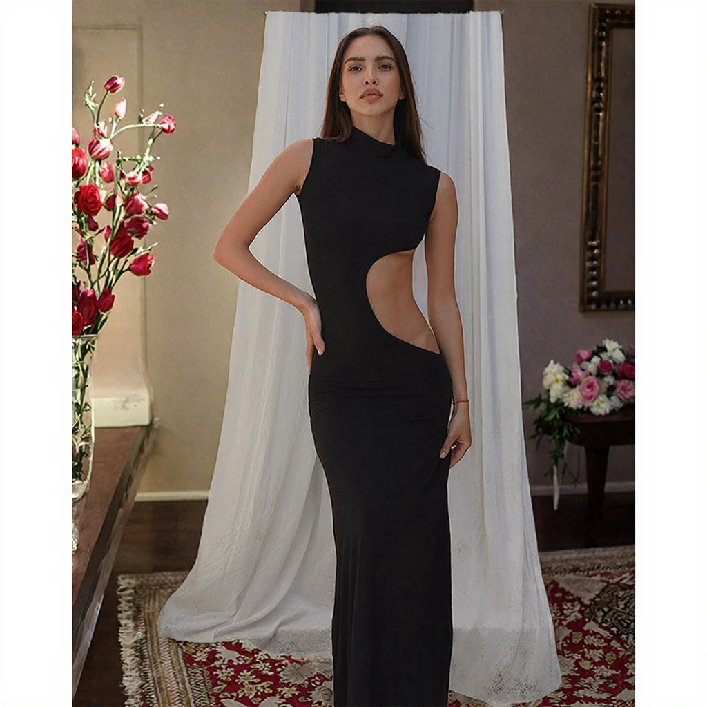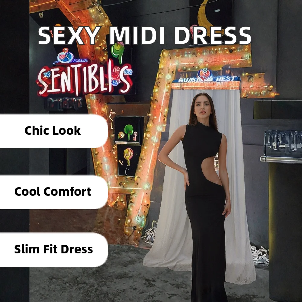 Customize Fashion Party Club Empire Waist Solid Backless for Bandage Hollow Out Spring Evening Bodycon Midi Sexy Women's Dress