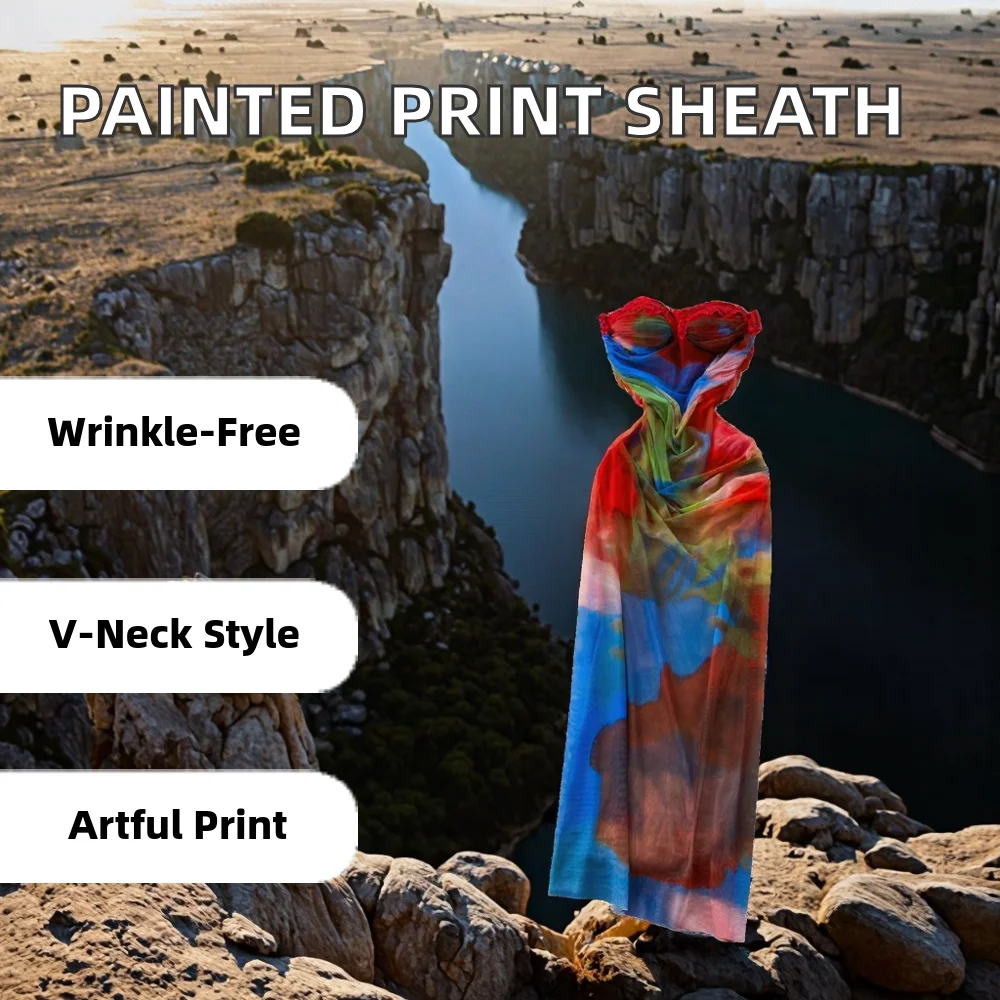 ZYHT 73963 Matte Satin Printed Geometric Pattern Maxi Women Asymmetric One Shoulder Ruched Hem Women Dress