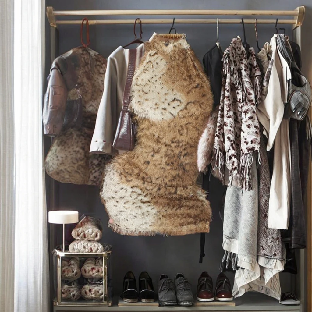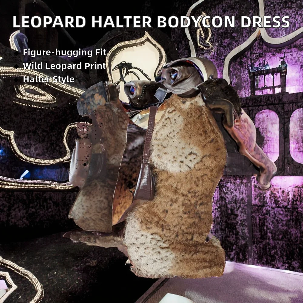 Customize Leopard Fur Digital Printing Breathable Sexy Halter Sleeveless Side Split Bodycon Female Trend Street Party Dresses