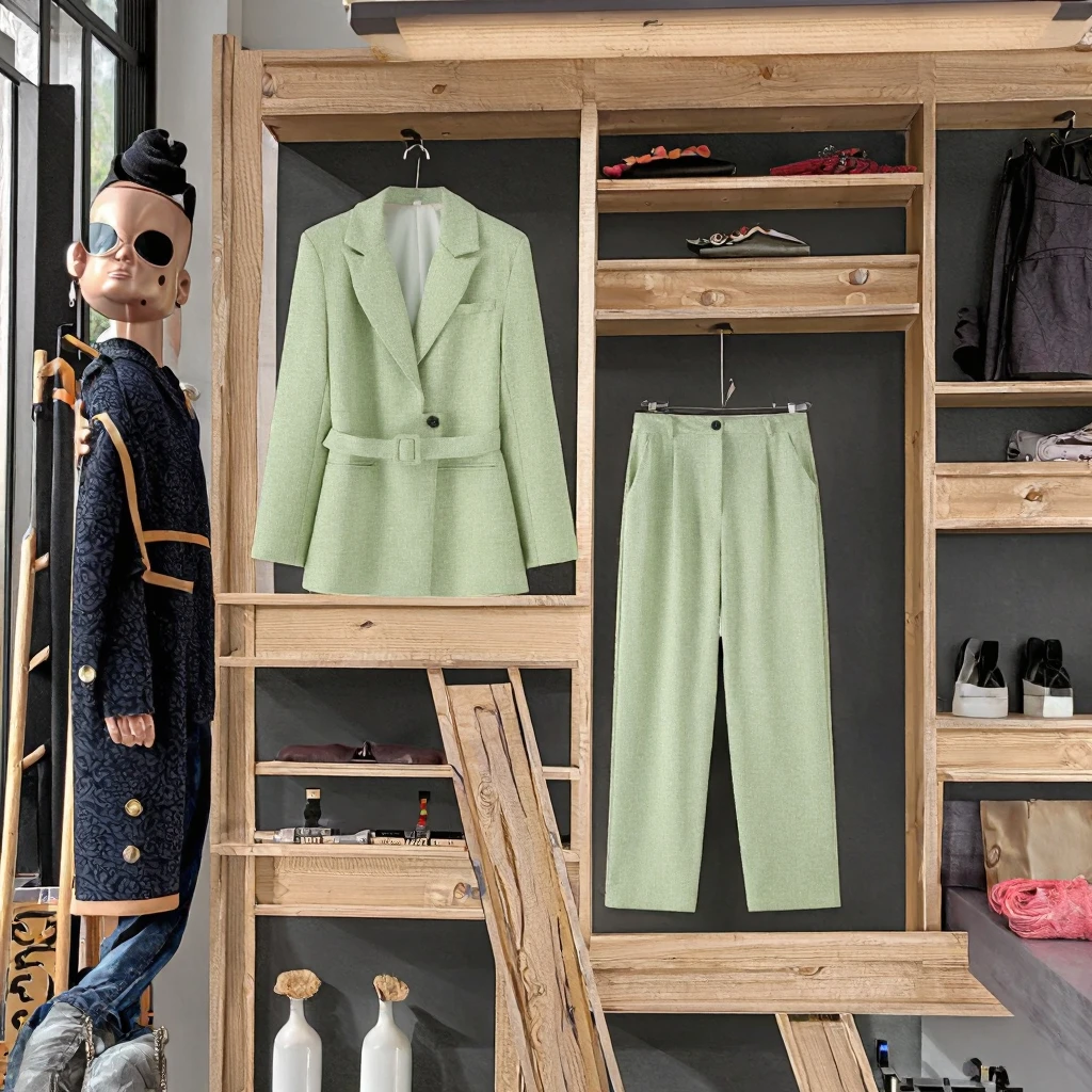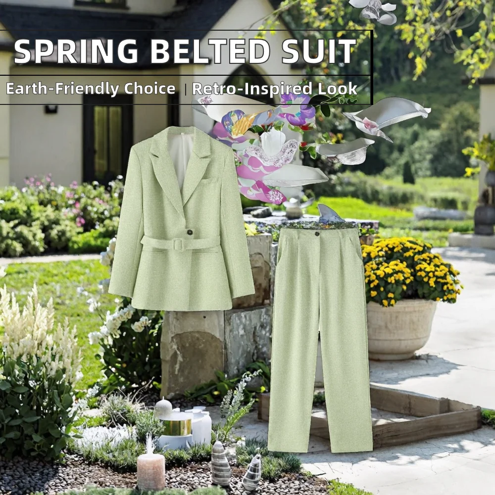 Customize Women's Spring New Style Fashionable and Elegant Commuting Belted Blazer Termino High Waist Pants One Set Loose Fit