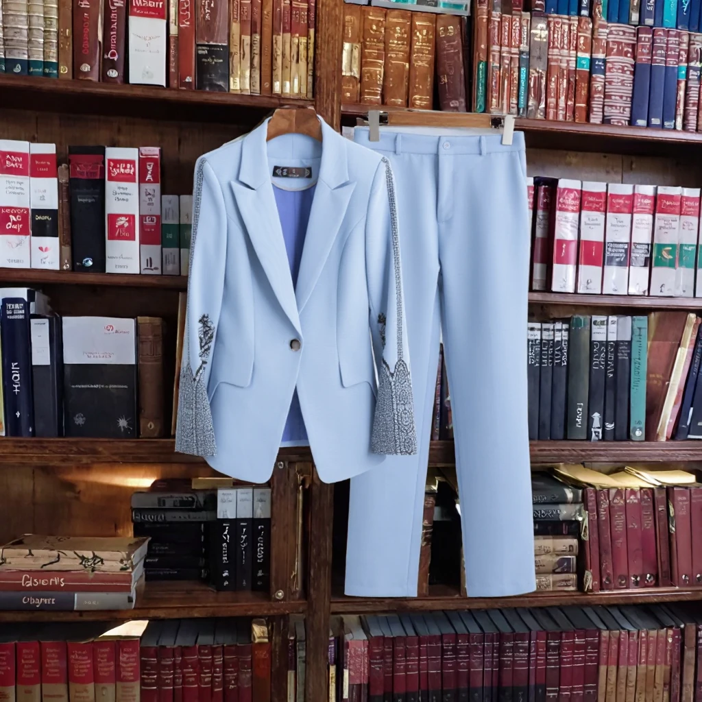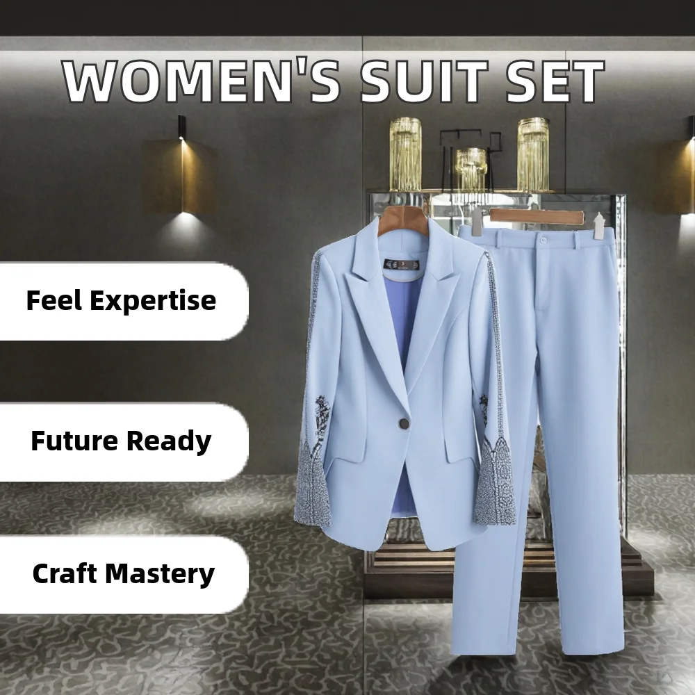 Customize Fall Women's Long Sleeve Anti-Wrinkle Viscose/Polyester Single Breasted Button Formal Suit Tuxedo Office Blazers Pants