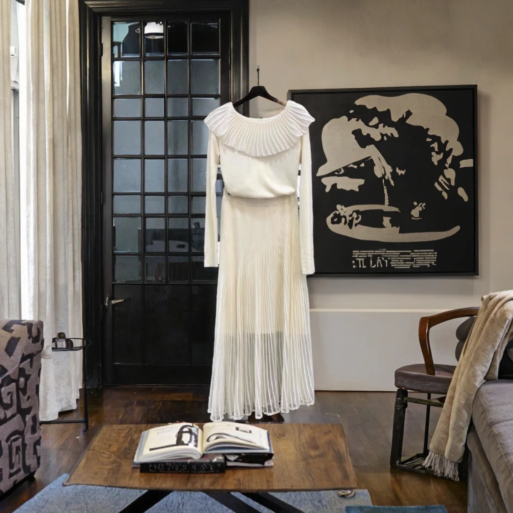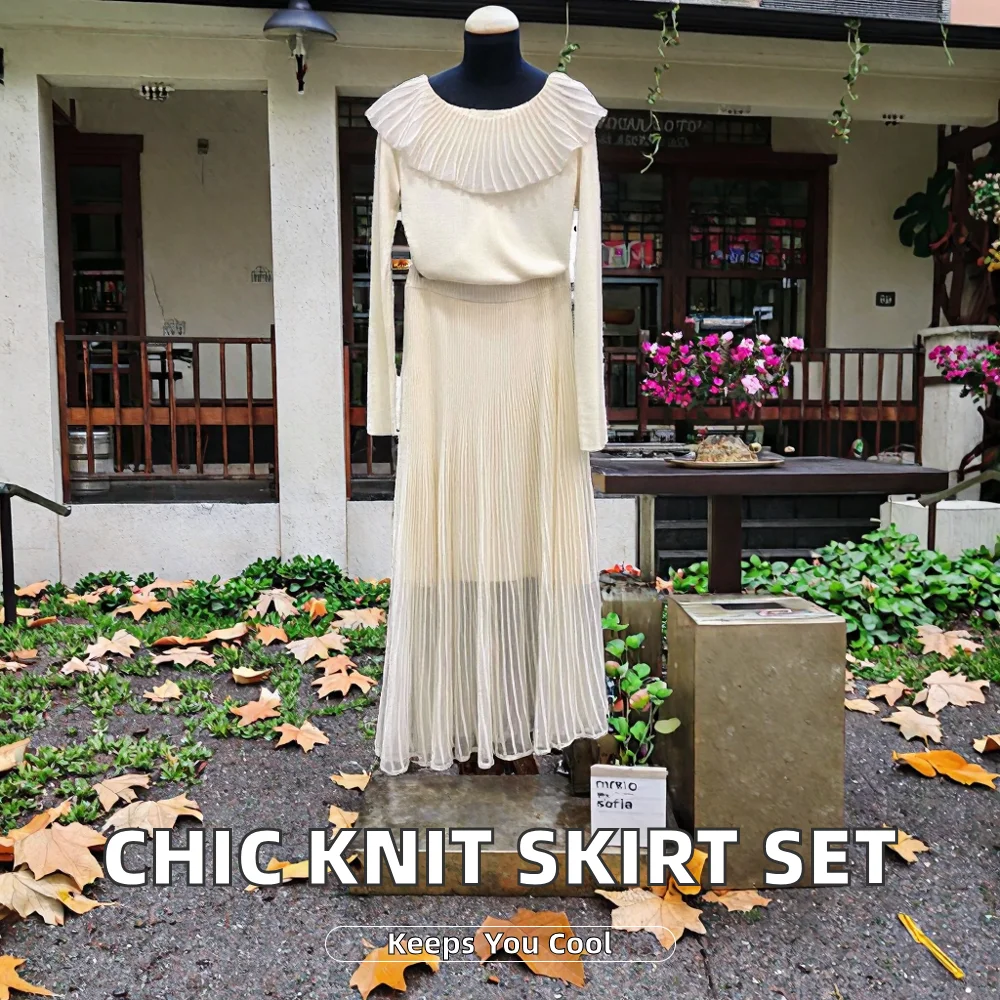Customize High Quality New Autumn Winter Solid Ankle-Length Knit Skirt Suit Set Breathable Wool Polyester Acrylic Knitted