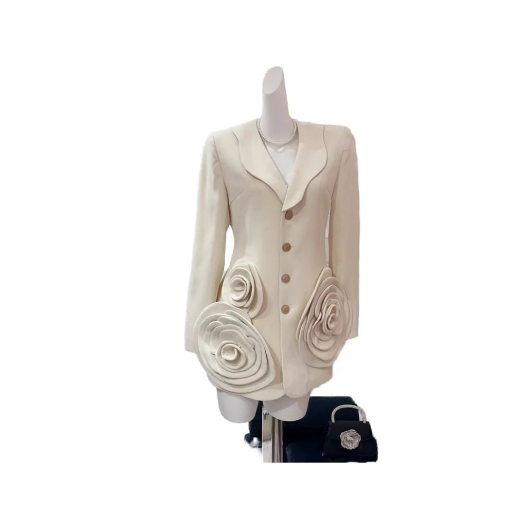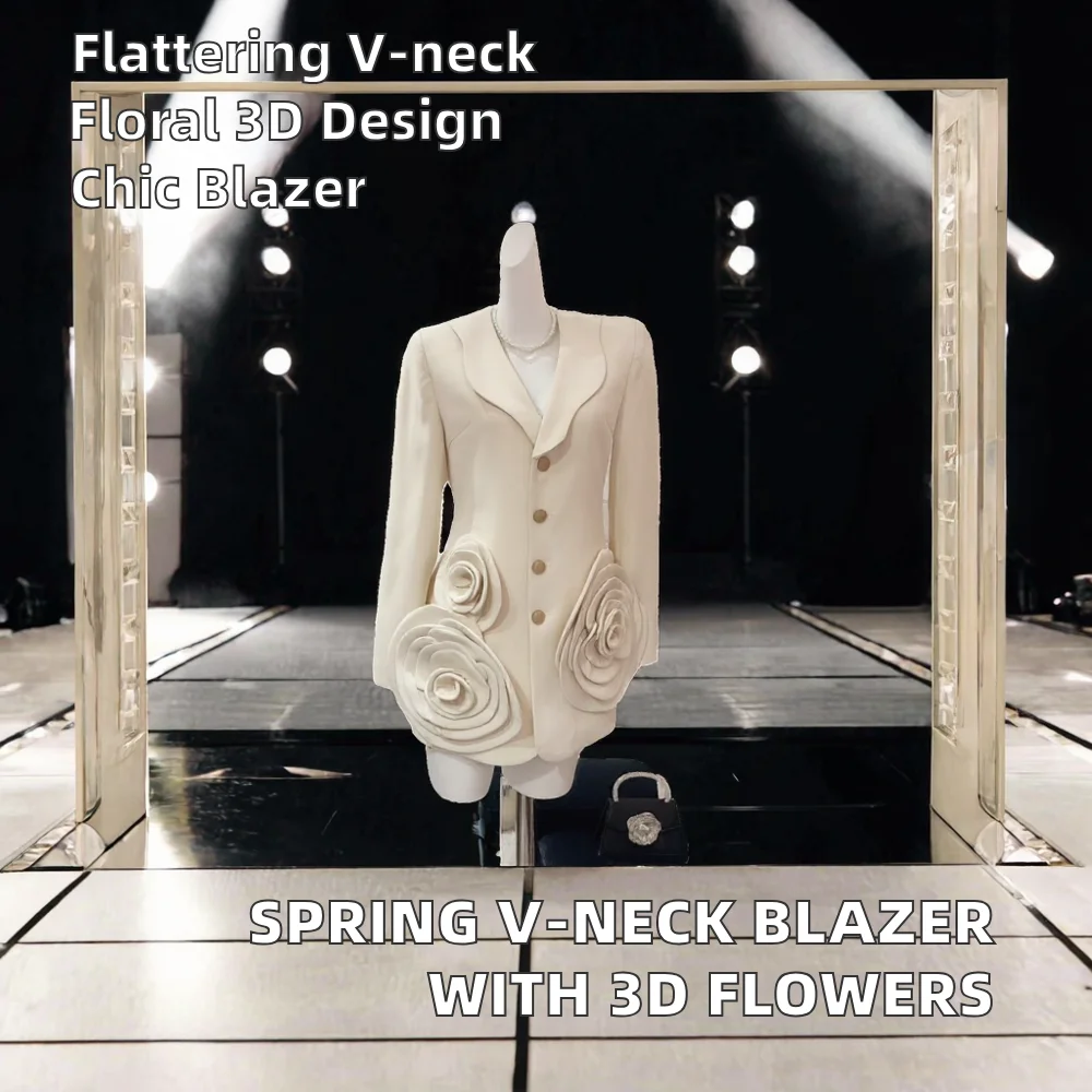 Customize Spring V-Neck Single Breasted Solid Ladies Women Jacket Regular Length Blazer Dress with Velour Fabric Breathable