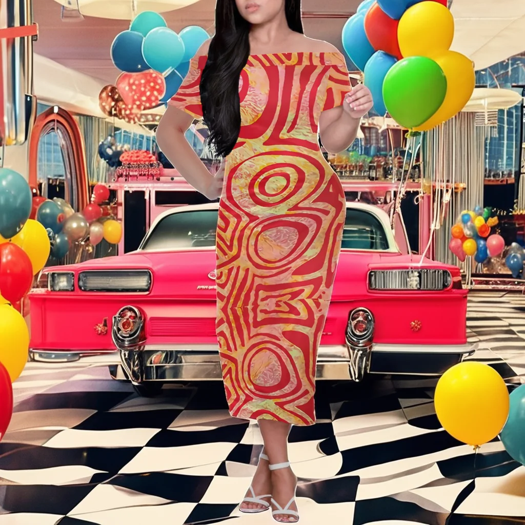 Customize Custom Cozy Short Sleeve Bodycon Midi Dress Hawaiian Tropical Tie-Dye Design Casual Knee-Length Big People Size